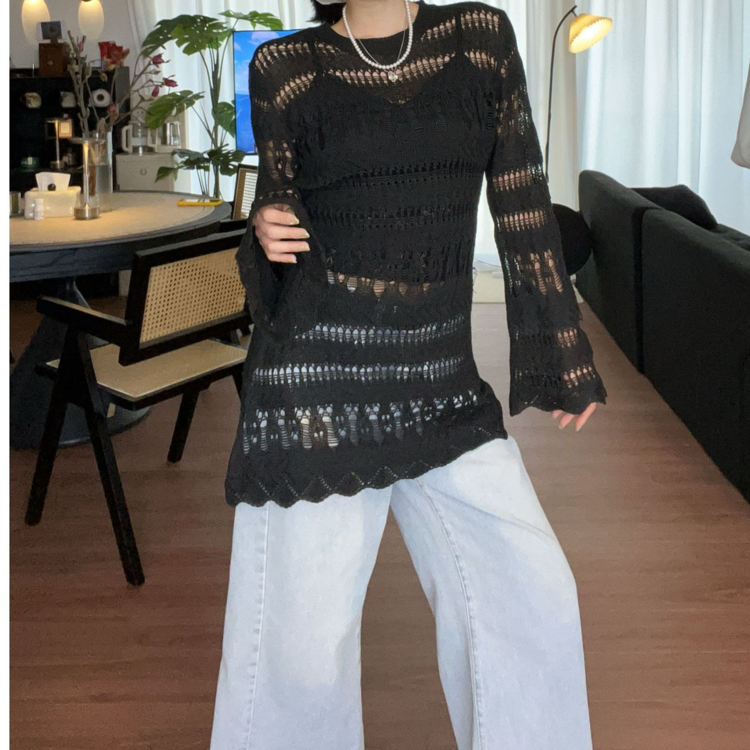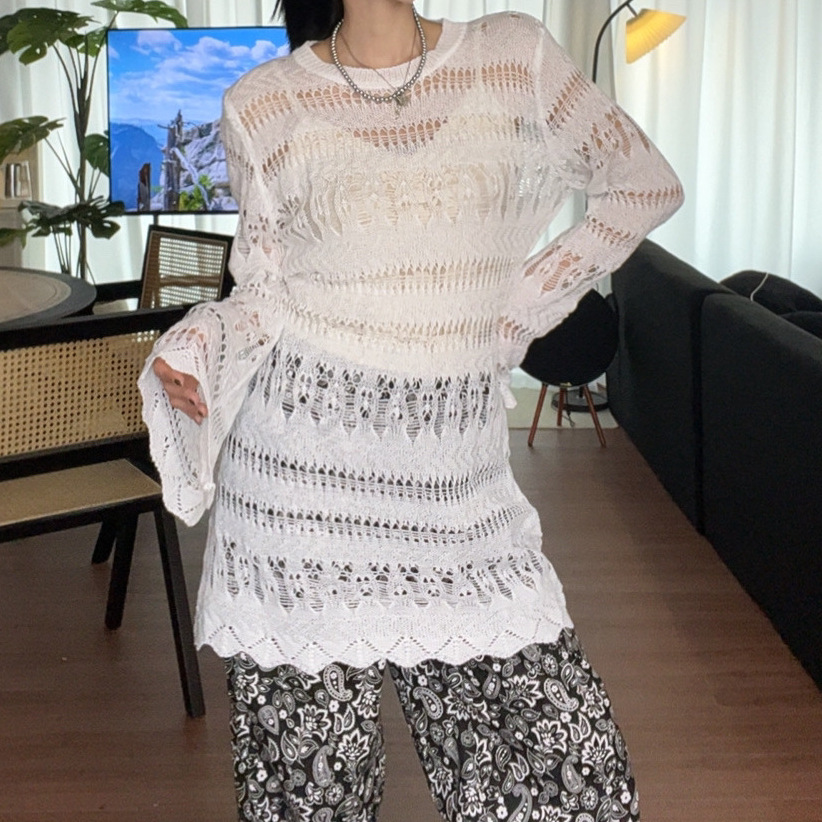 Летнее пляжное платье-туника из тенселя с вырезами, длинными рукавами, защитой от солнца, трикотажное, в наличии