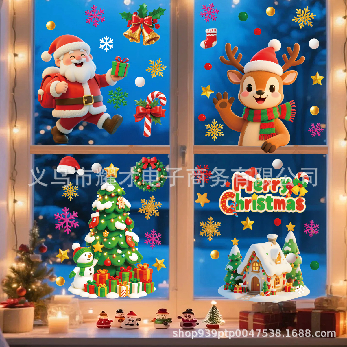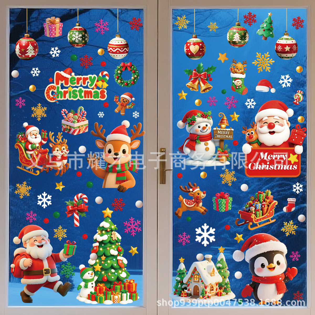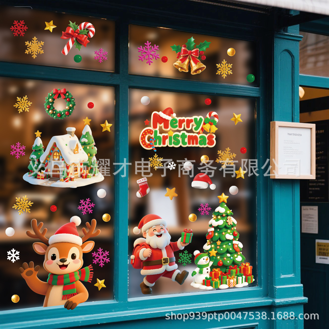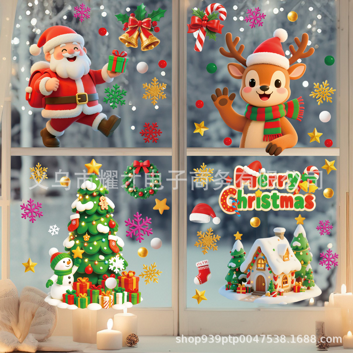 Новые 3D рождественские электростатические наклейки Amazon, наклейки на оконное стекло торгового центра, наклейки на двери, милое украшение для вечеринки
