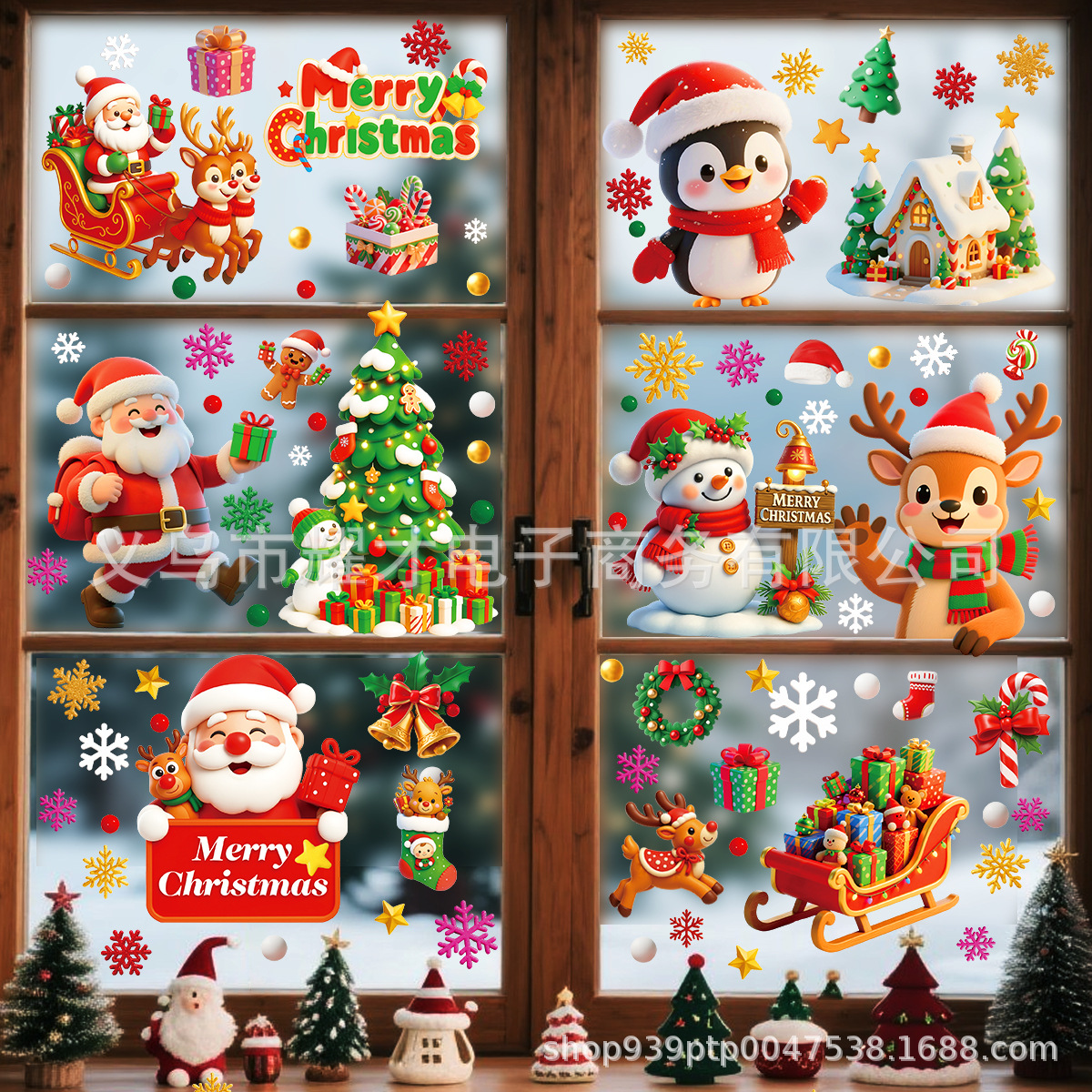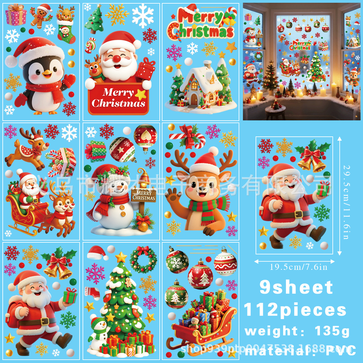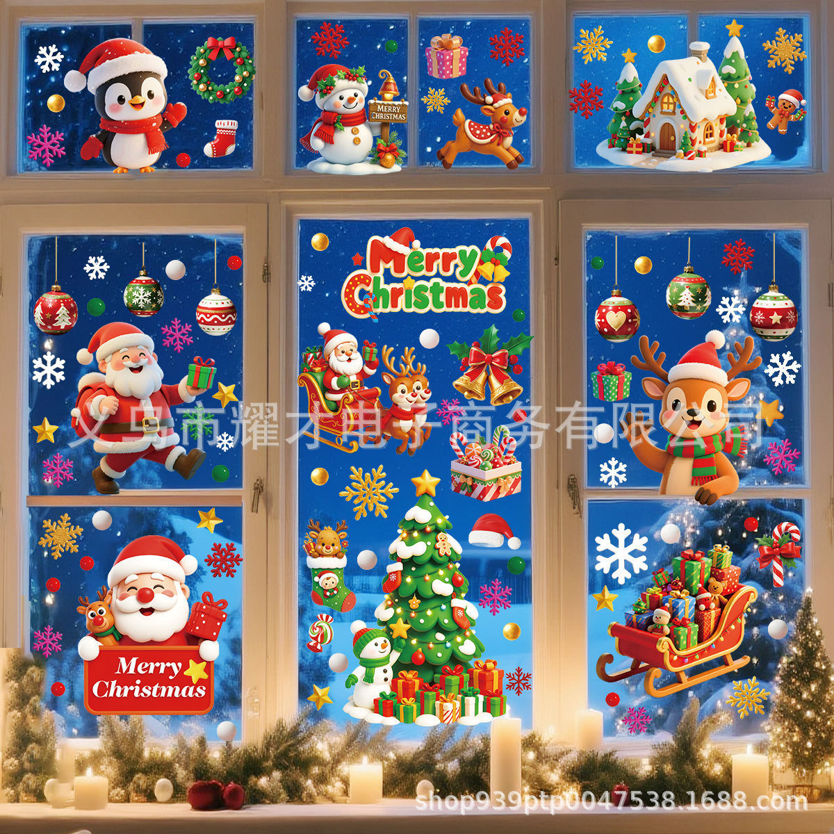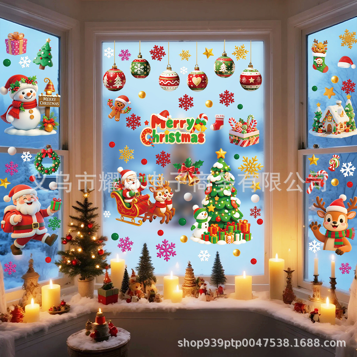 Новые 3D рождественские электростатические наклейки Amazon, наклейки на оконное стекло торгового центра, наклейки на двери, милое украшение для вечеринки