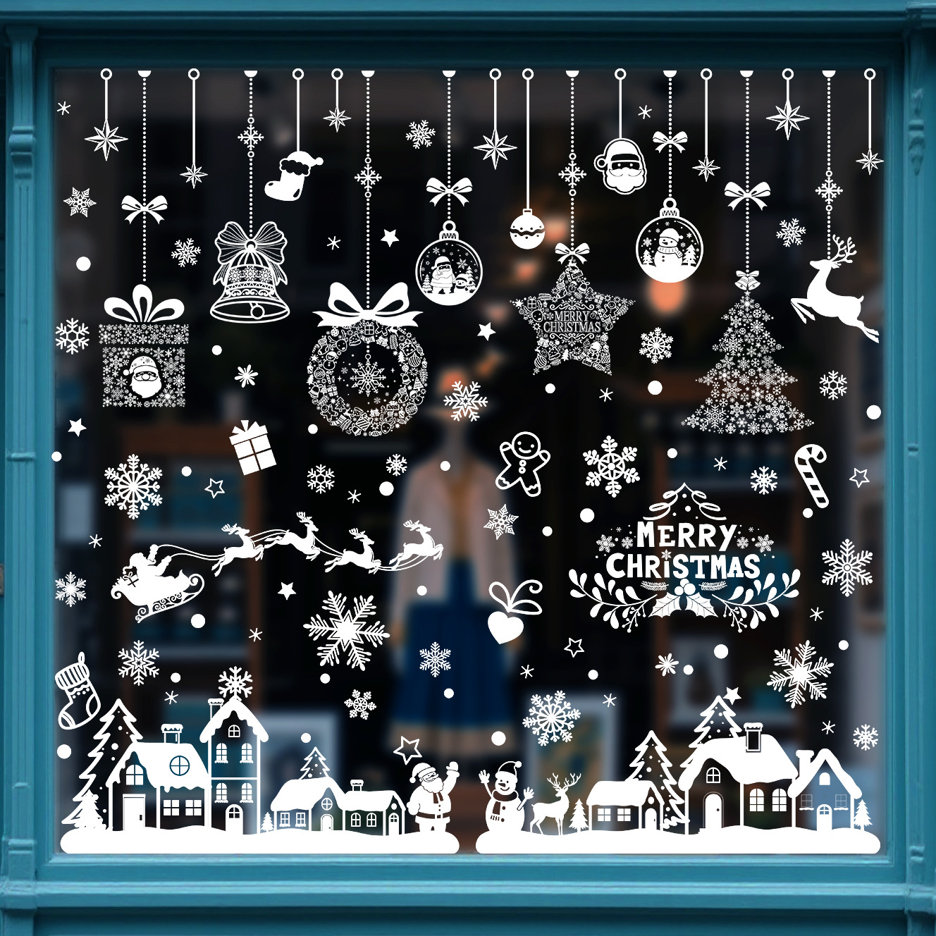 Новые трансграничные наклейки на окна снеговика, рождественские наклейки, макет торгового центра, наклейки на оконное стекло, двери, вечерние праздничные украшения