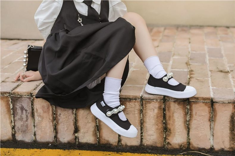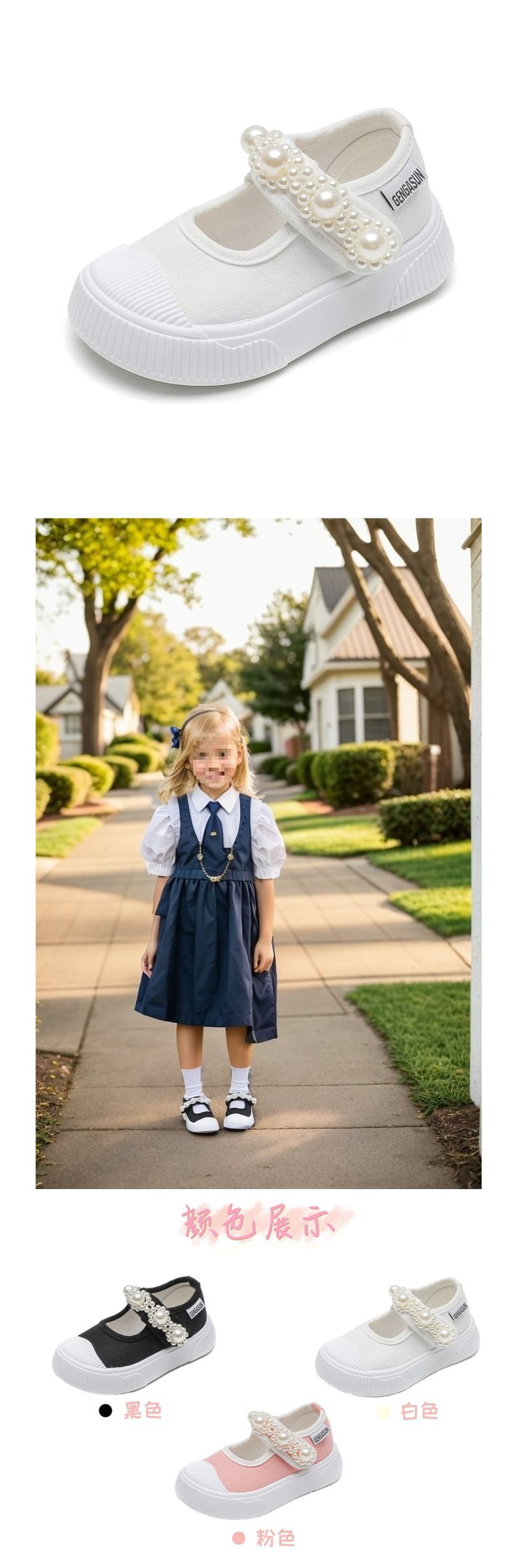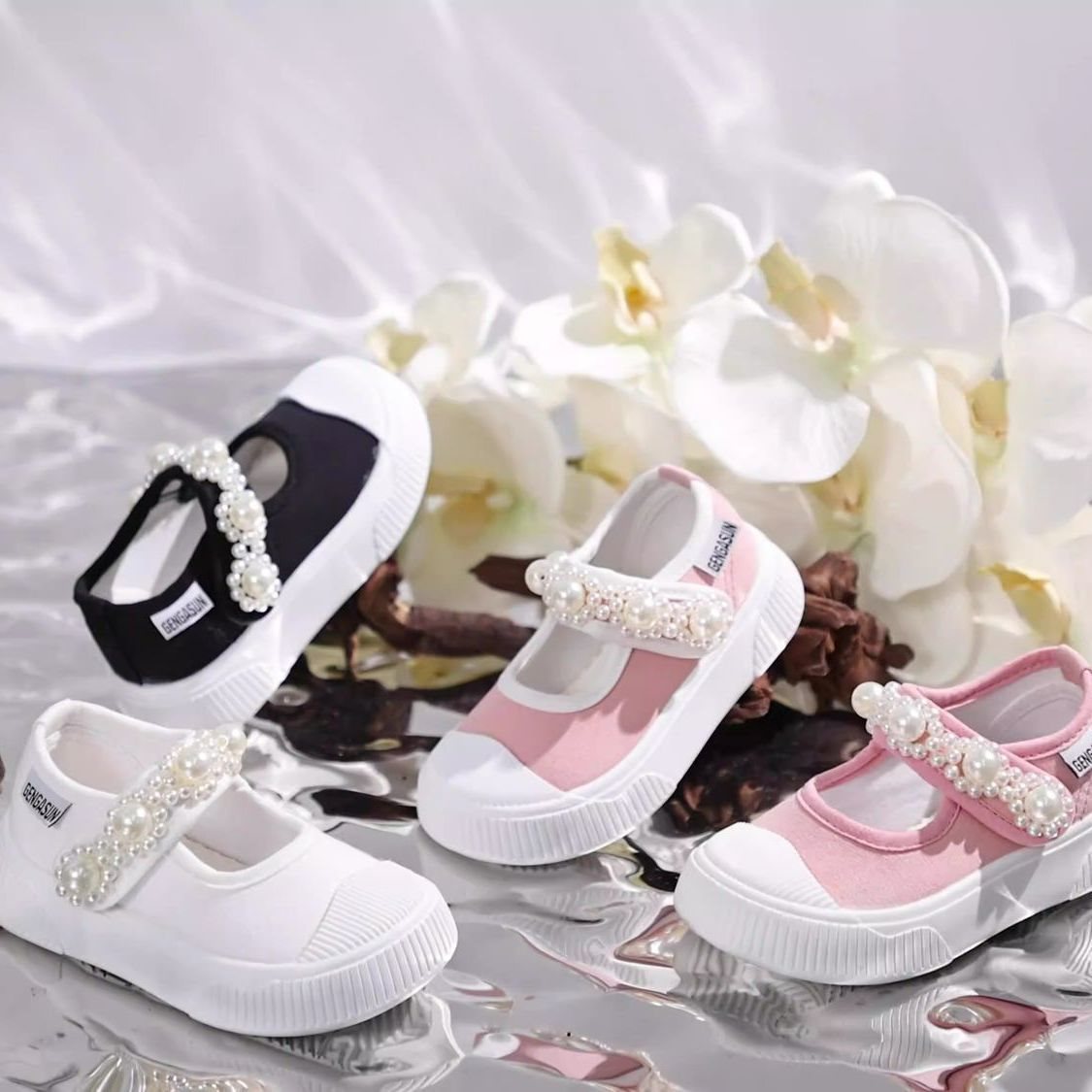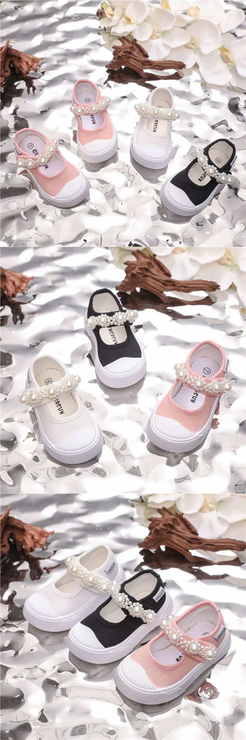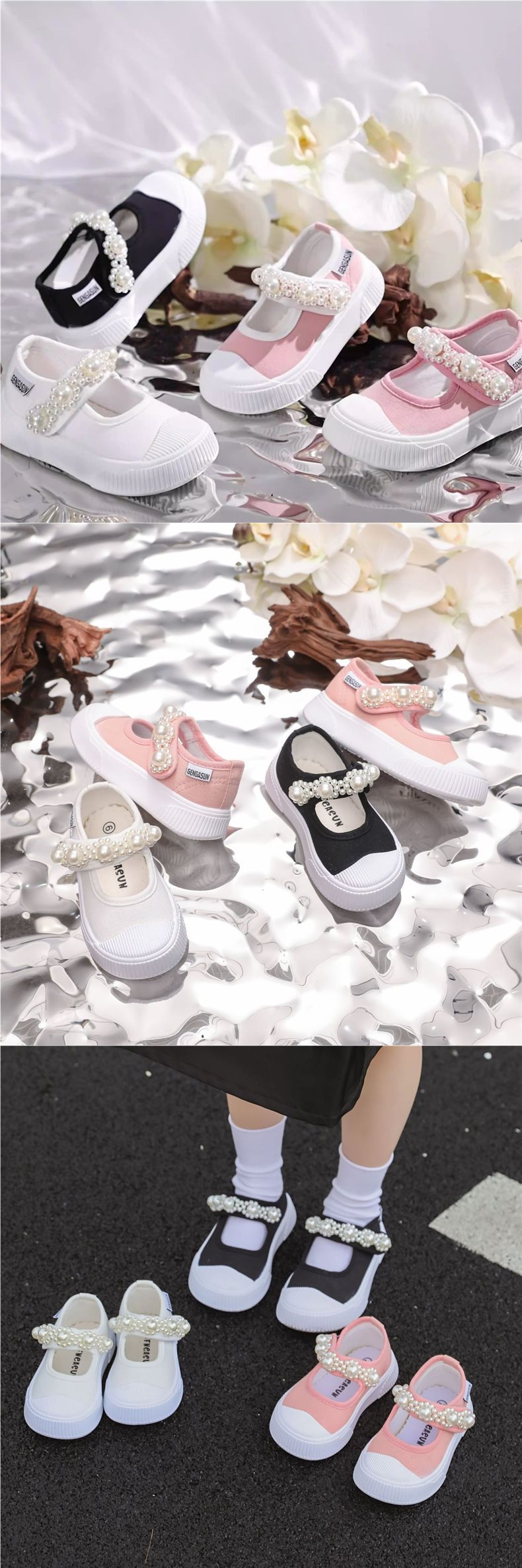 Детская парусиновая обувь, европейские и американские туфли принцессы с жемчугом, студенческие повседневные туфли-бисквиты, туфли Мэри Джейн на толстой подошве на липучке для девочек