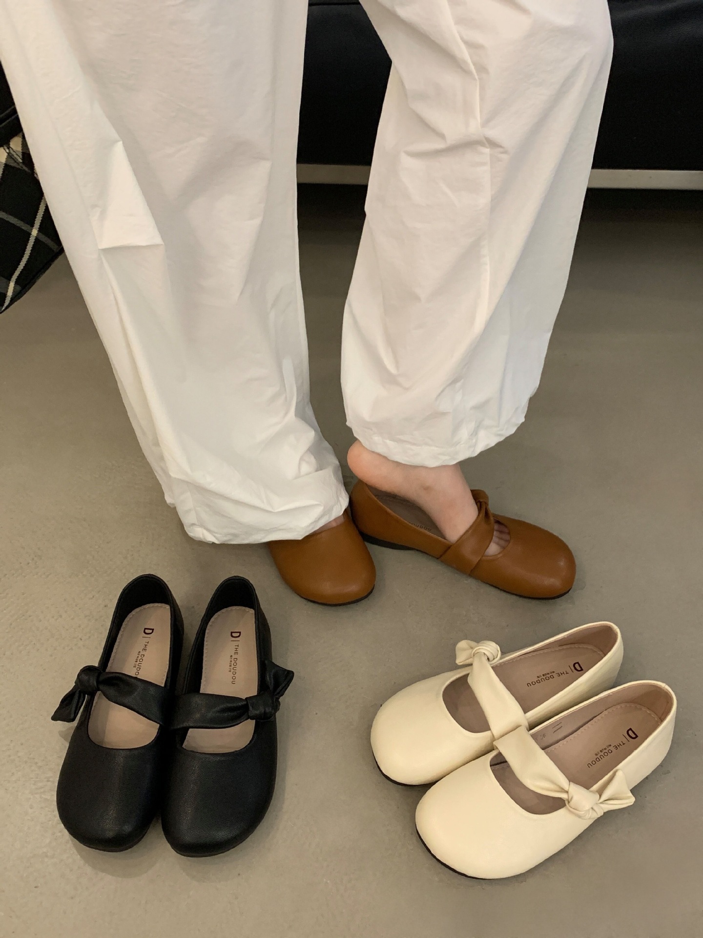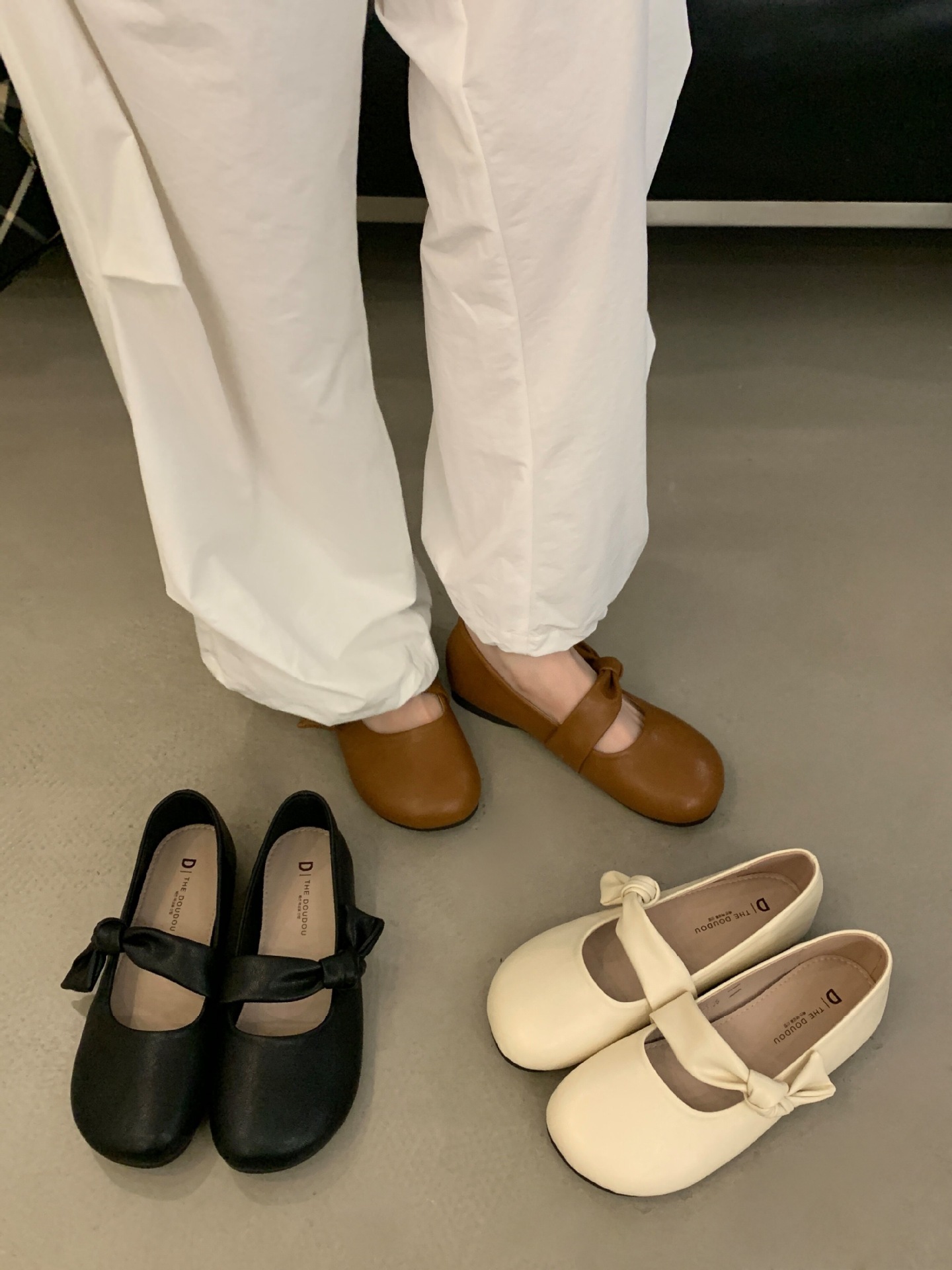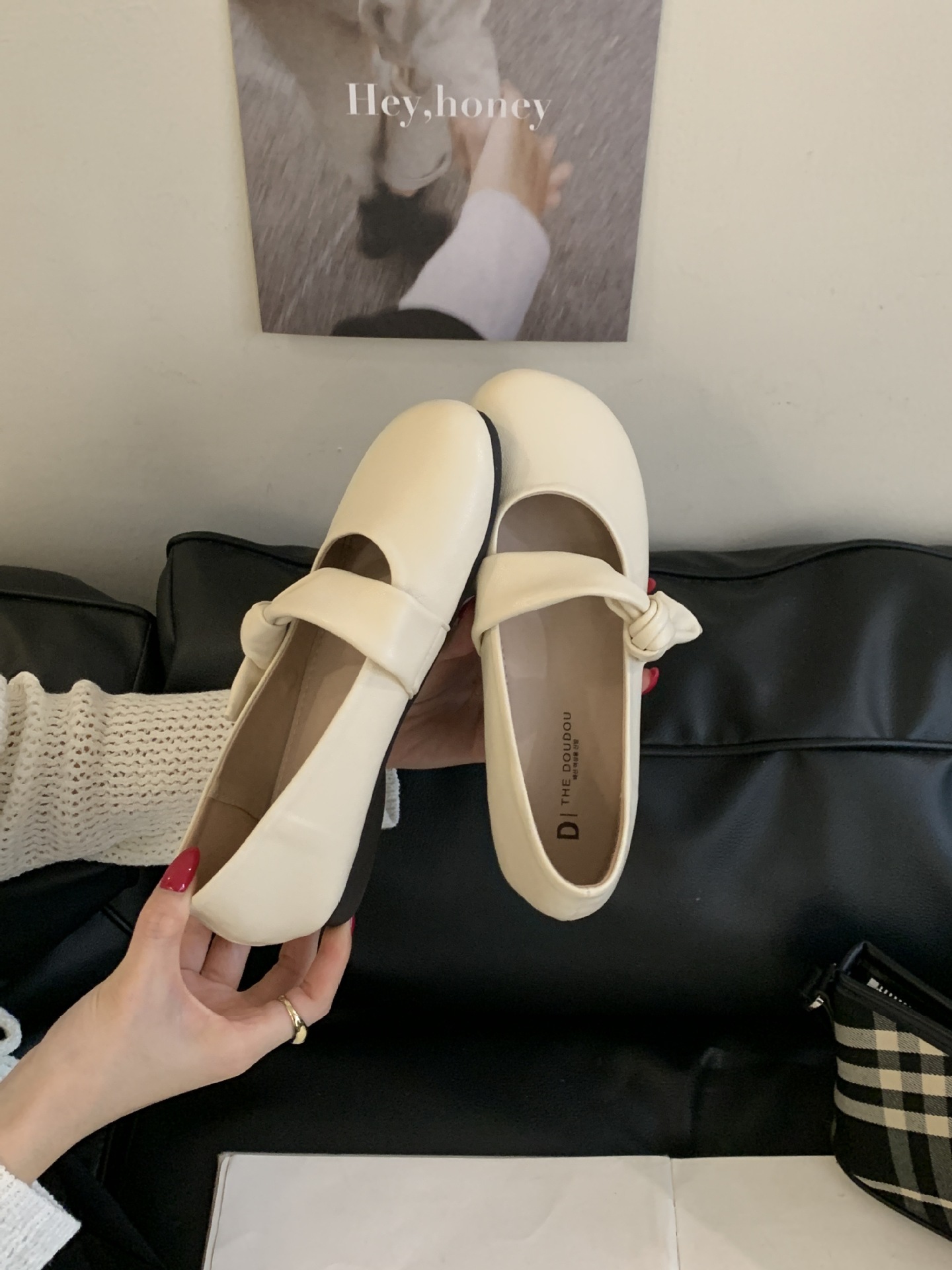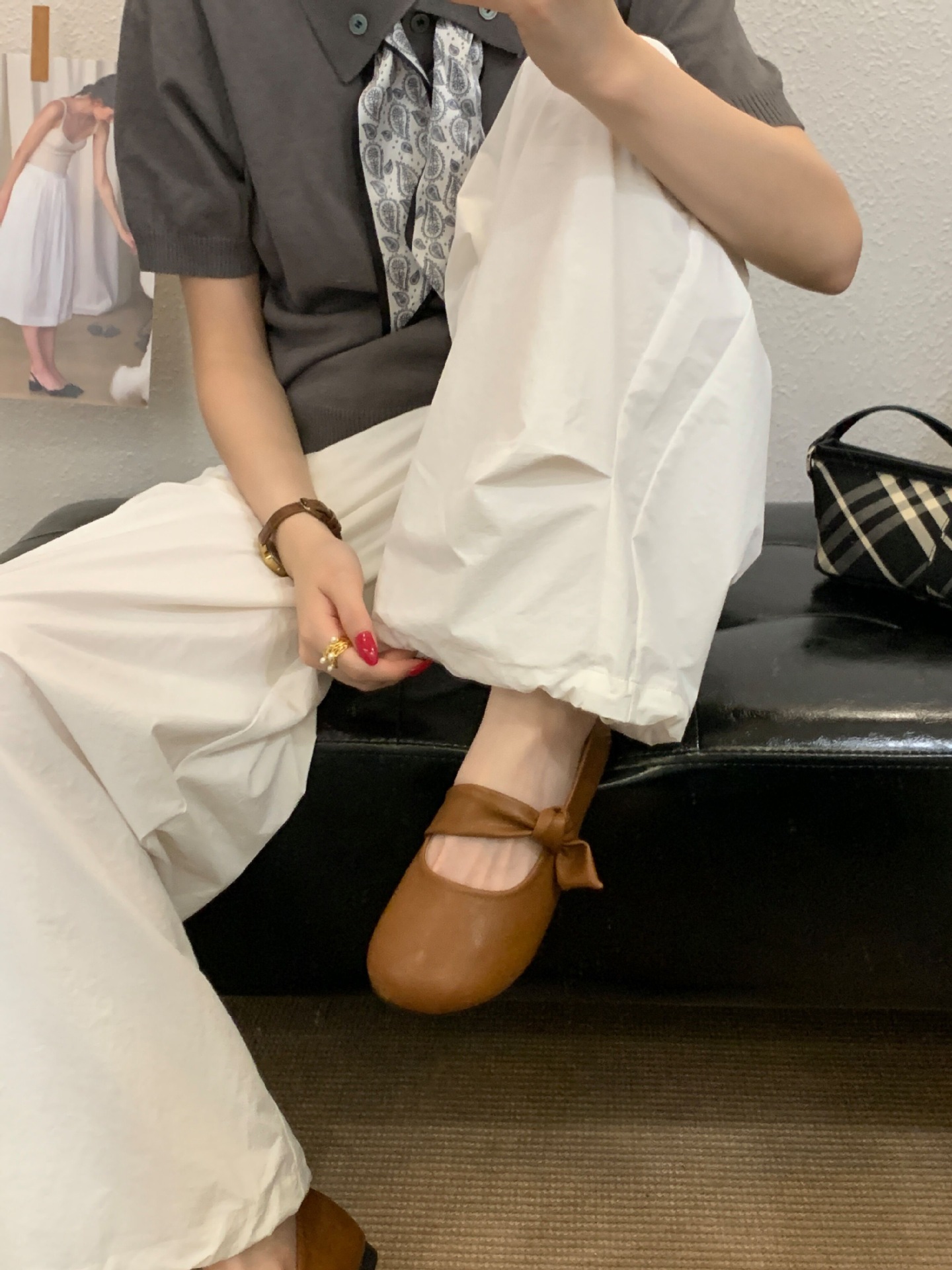 平跟设计感一字带棕色通勤单鞋女鞋子2025新款圆头法式晚晚奶奶鞋
