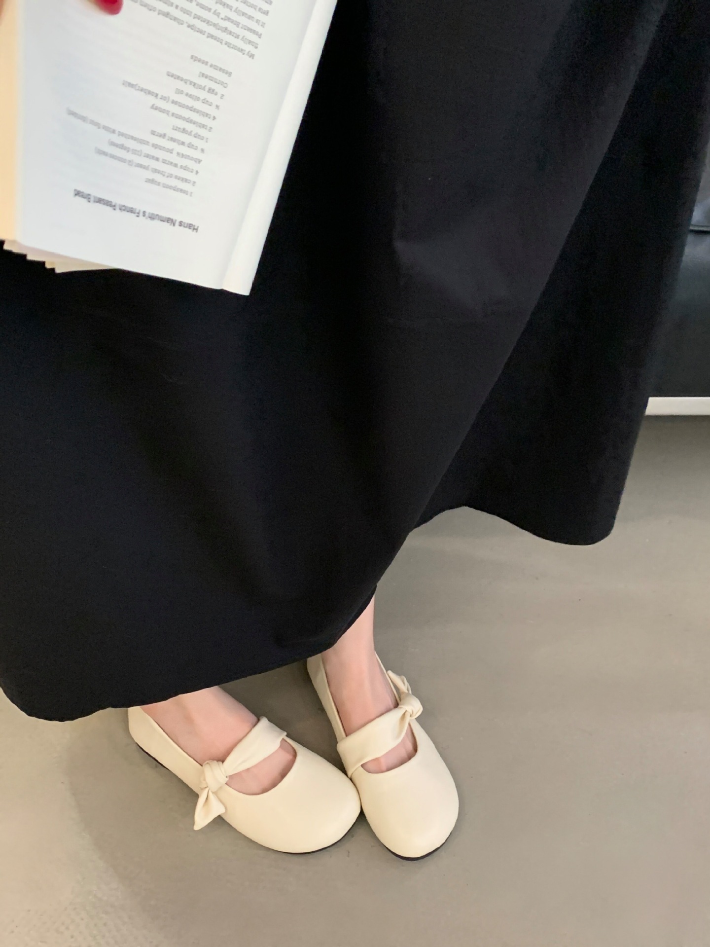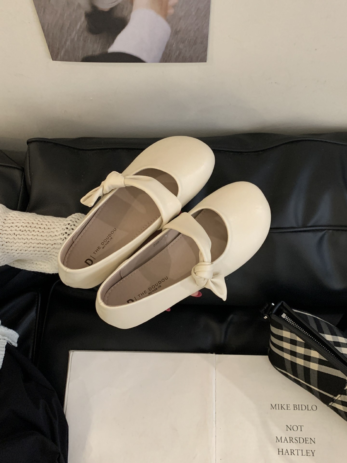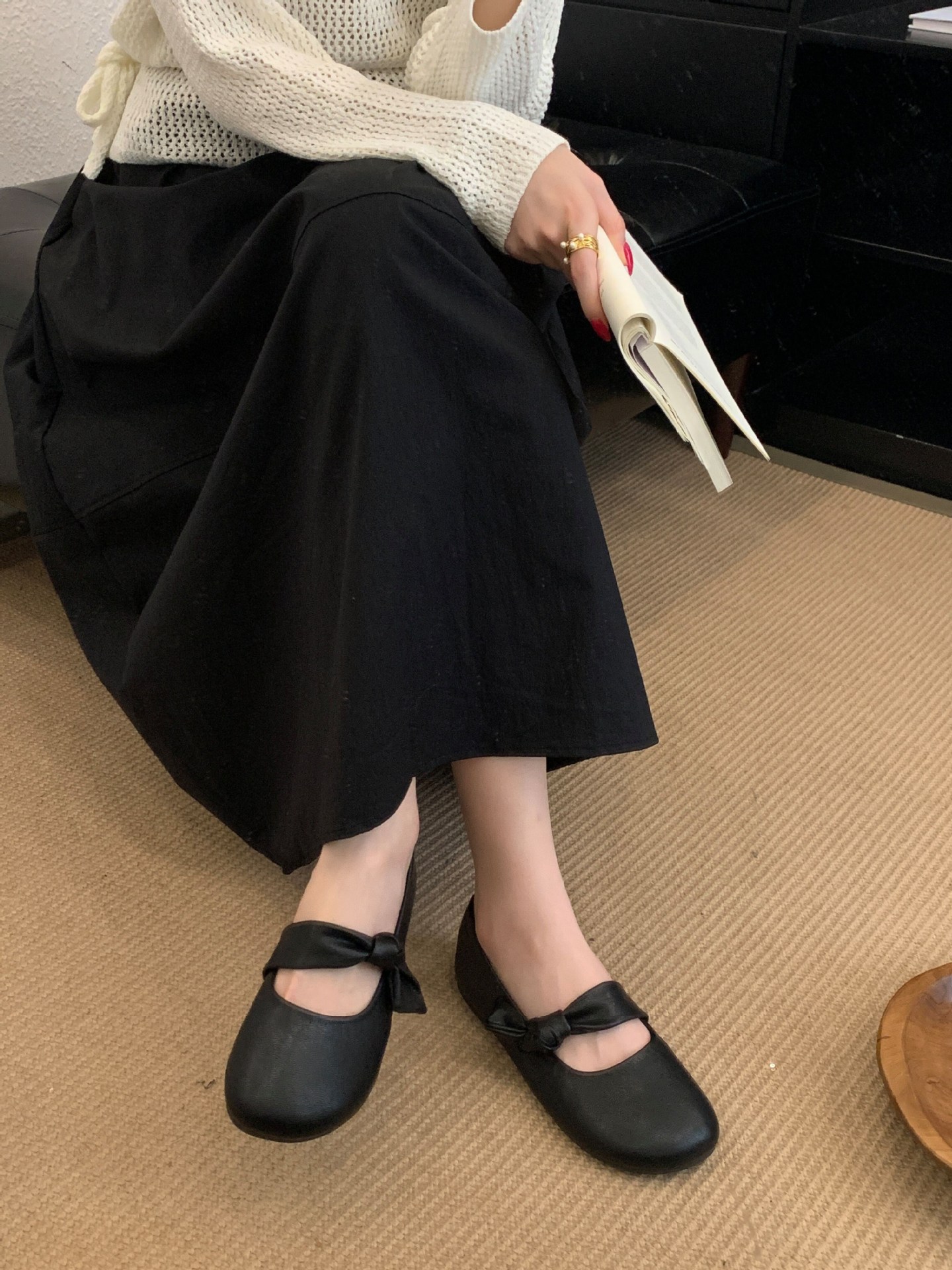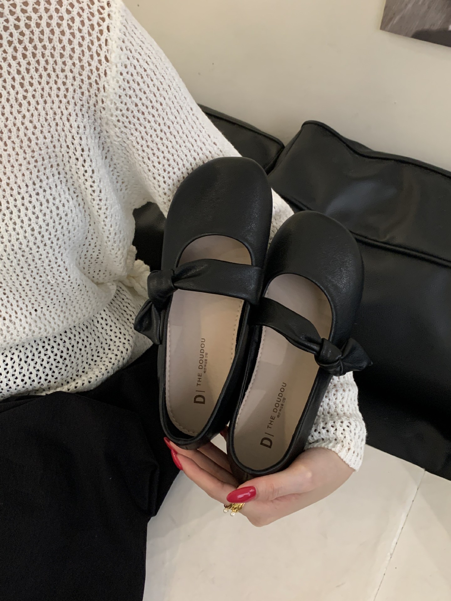 平跟设计感一字带棕色通勤单鞋女鞋子2025新款圆头法式晚晚奶奶鞋