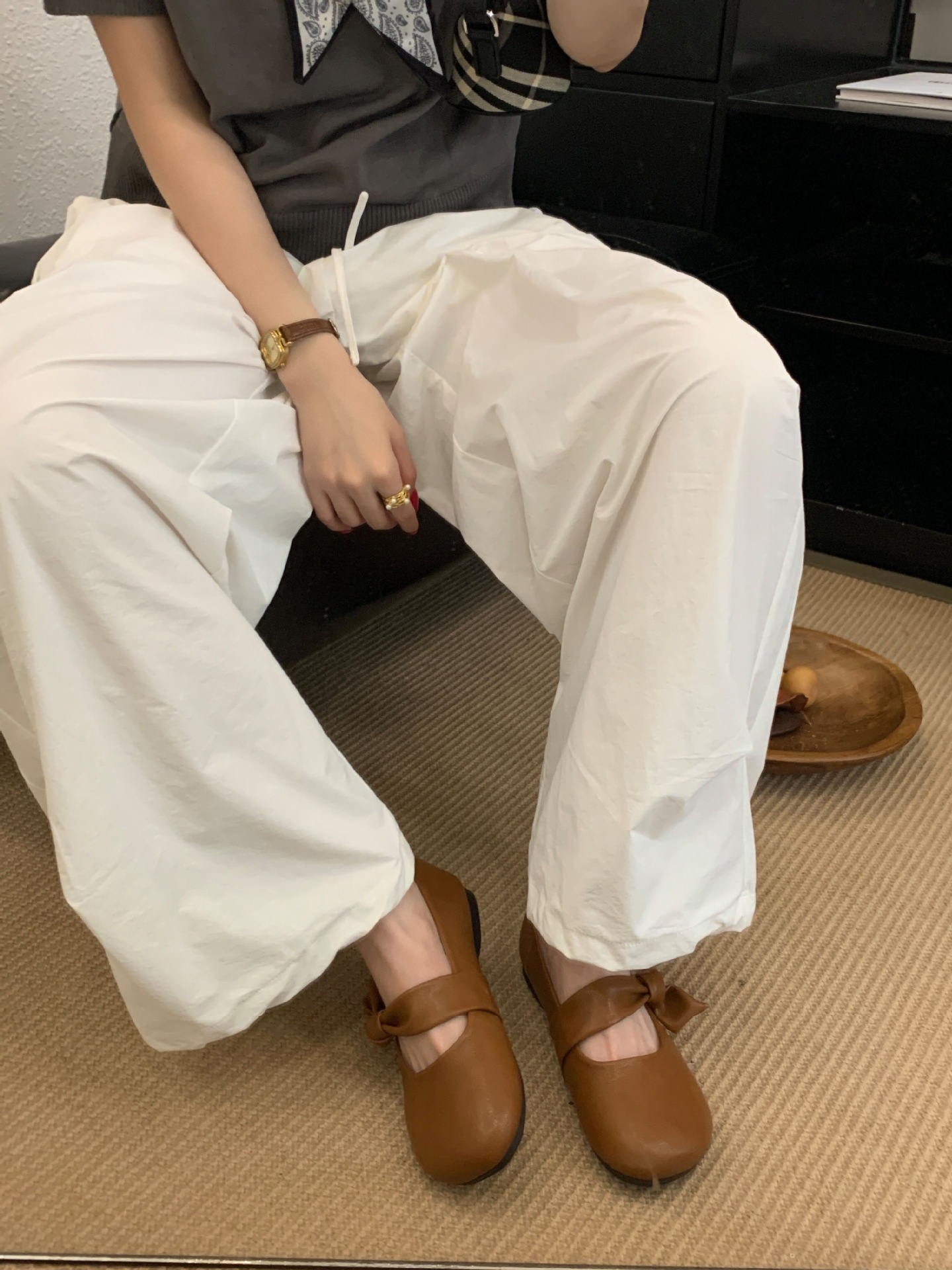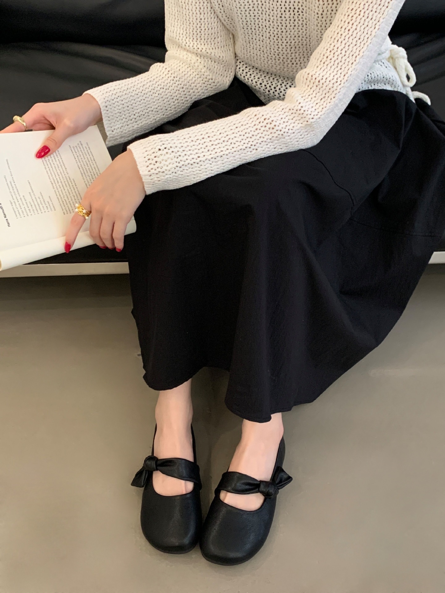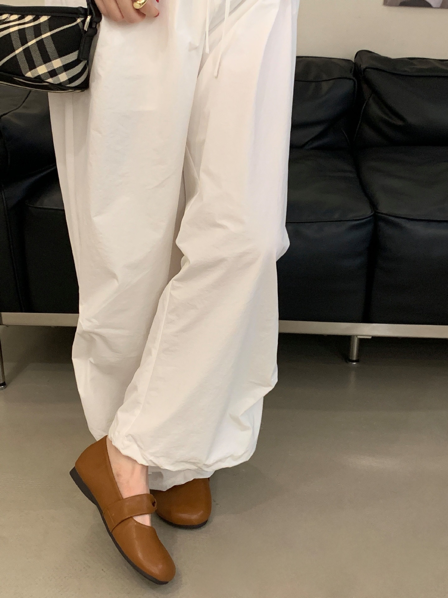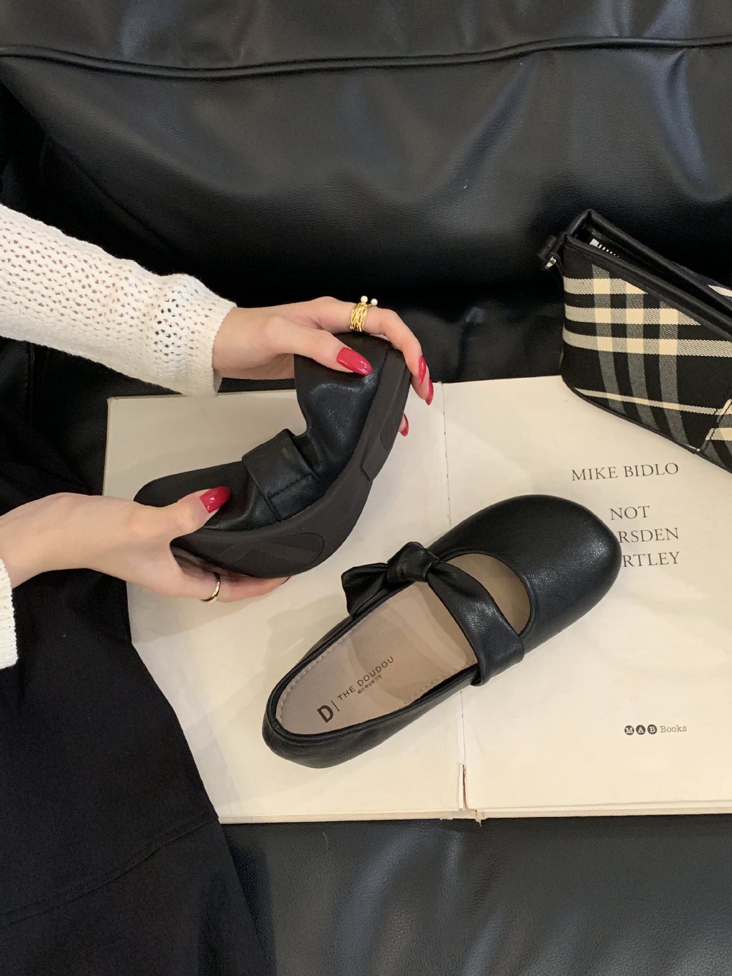 平跟设计感一字带棕色通勤单鞋女鞋子2025新款圆头法式晚晚奶奶鞋