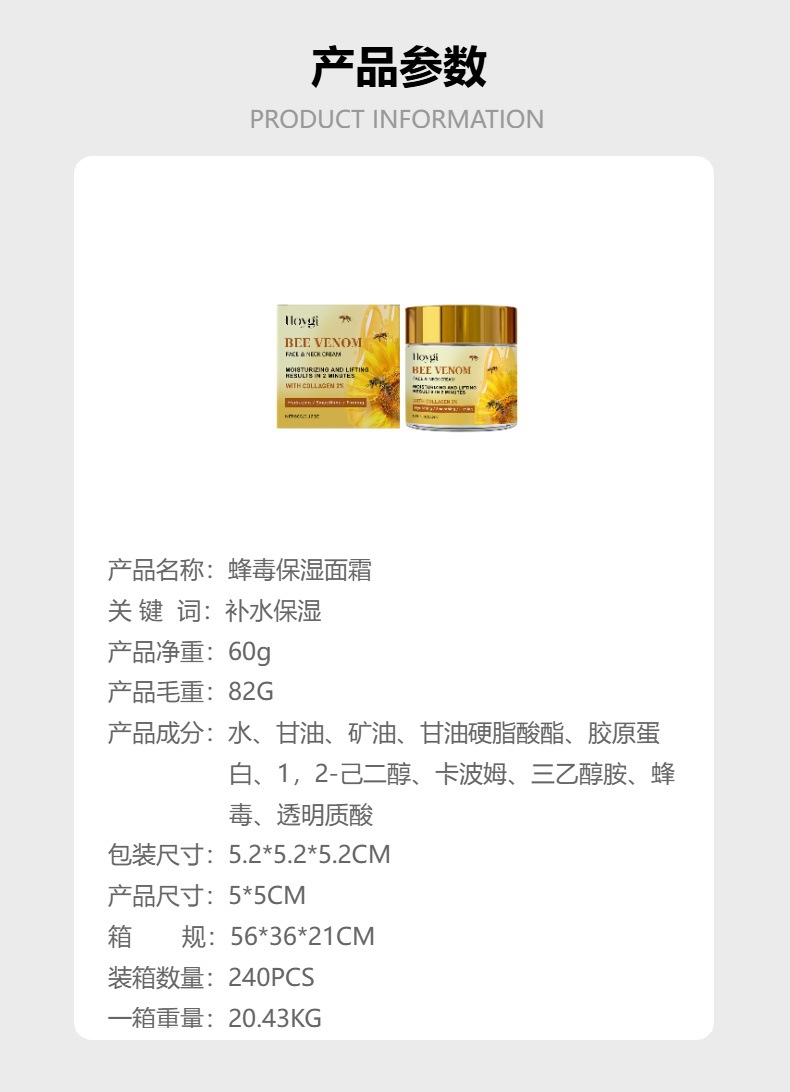 HOYGI Увлажняющий крем с пчелиным ядом Нежный уход Нежная смазка для кожи лица Эластичный нежный питательный увлажняющий крем