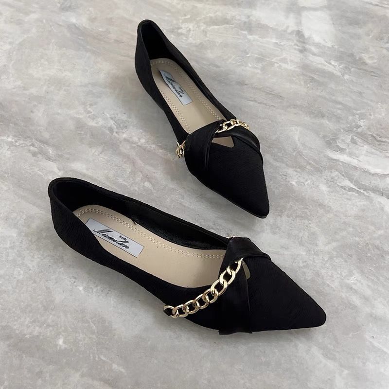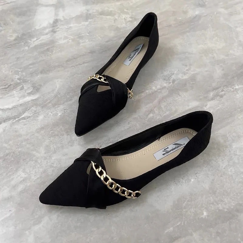 Женские балетки с заострённым носком, мягкая подошва, летний стиль 2025 года, чёрные балетки на низком ходу, универсальные туфли на все сезоны.
