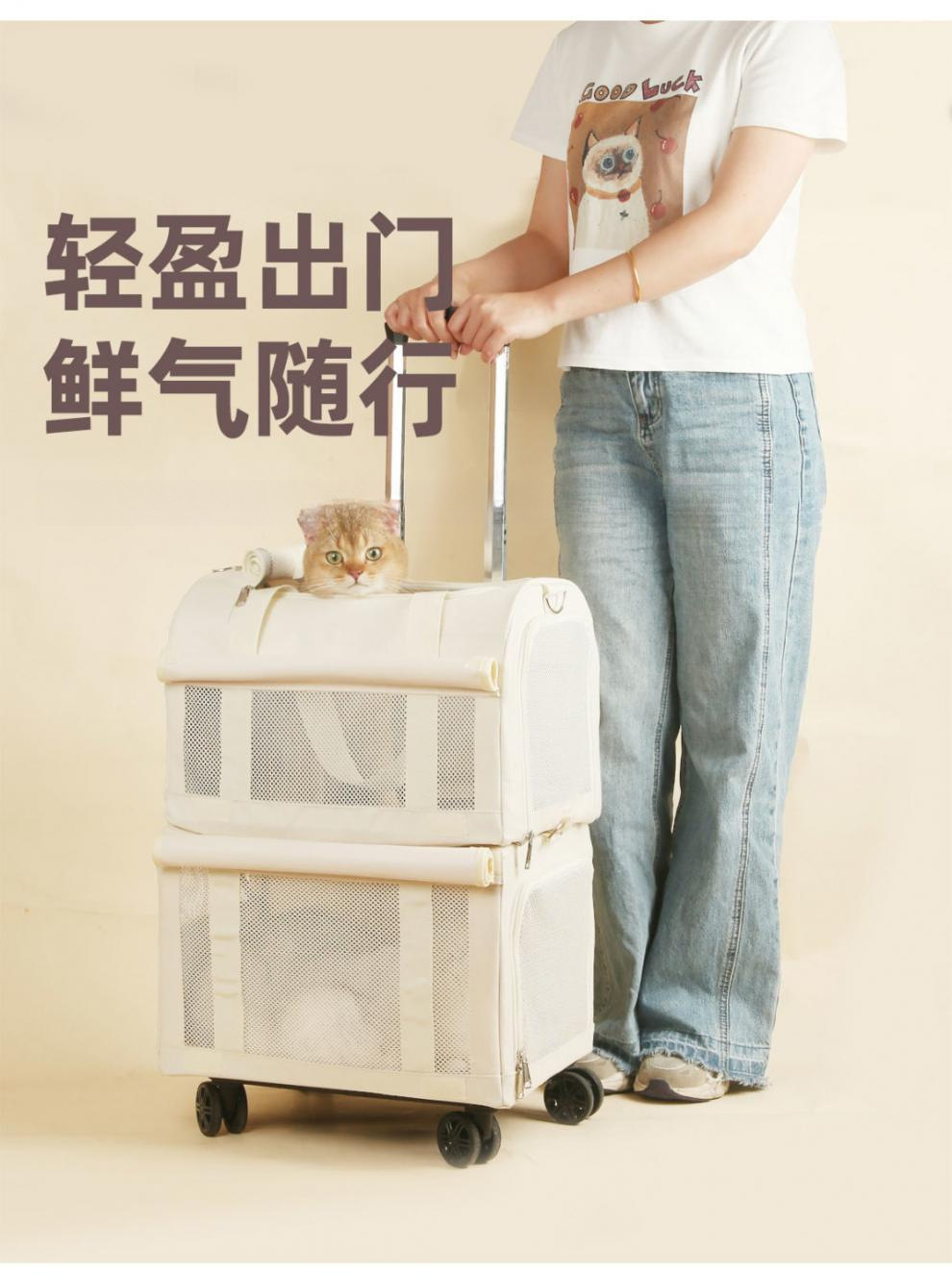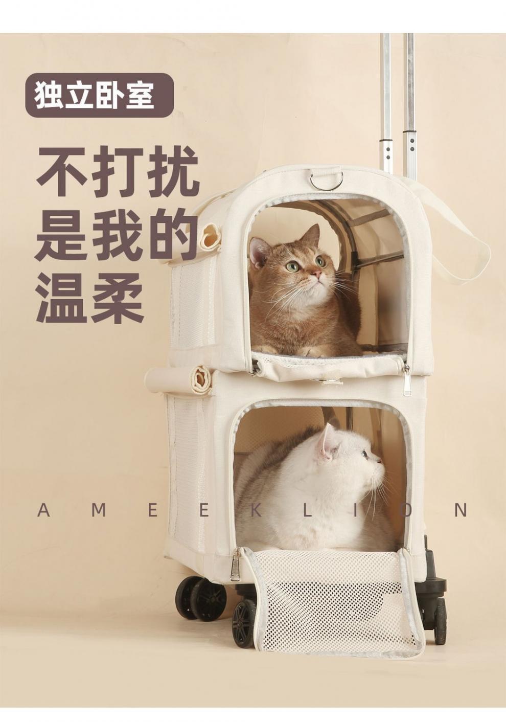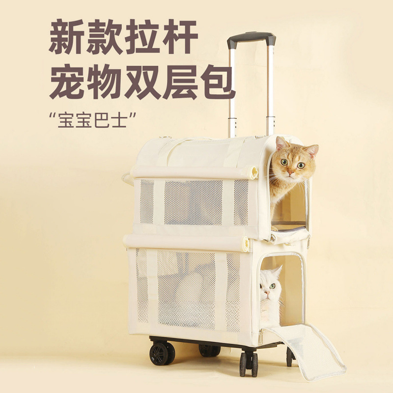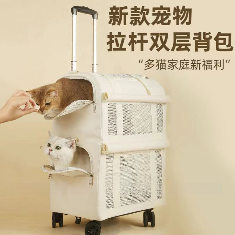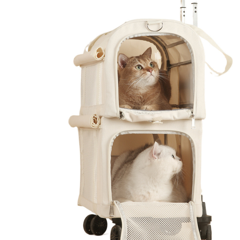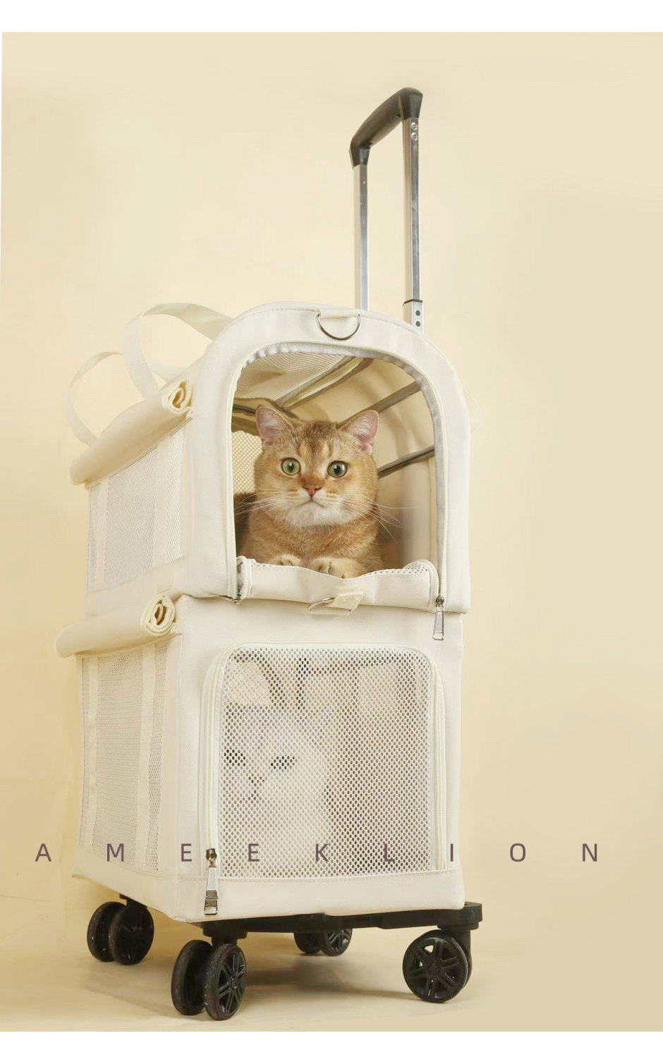 Сумка для прогулок с кошкой, дышащая коробка на колесиках для кошек, большая вместительная складная сумка для хранения, двухслойная сумка для домашних животных