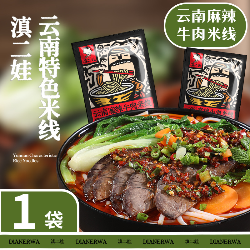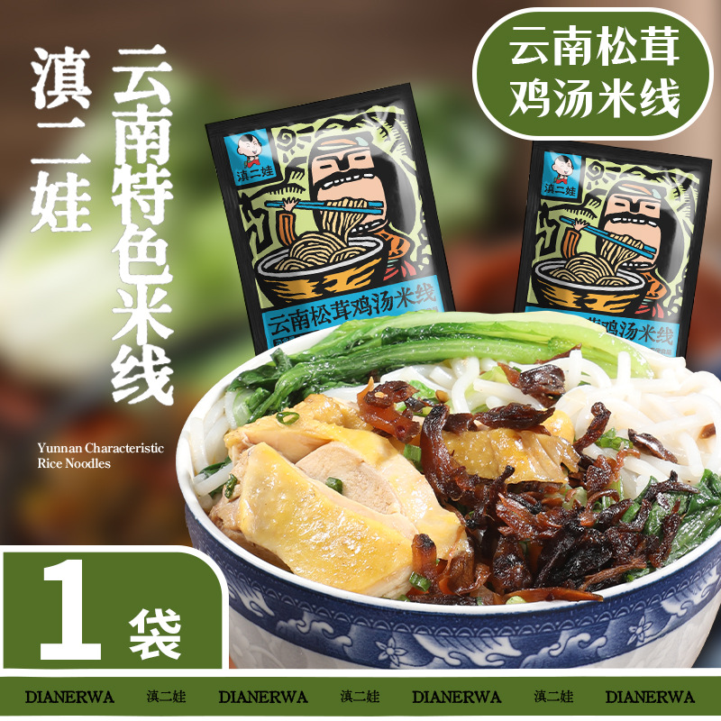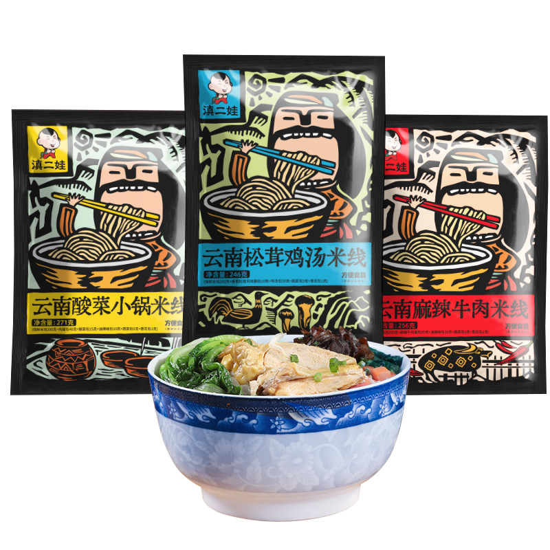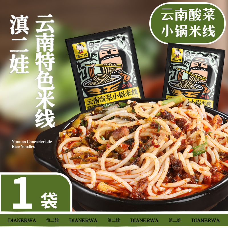 Dian Erwa Yunnan Маленькая кастрюля с маринованными овощами Рисовая лапша 271 г Рисовая лапша Cross-Bridge Свежая рисовая вермишель Удобный завтрак быстрого приготовления в пакетиках.