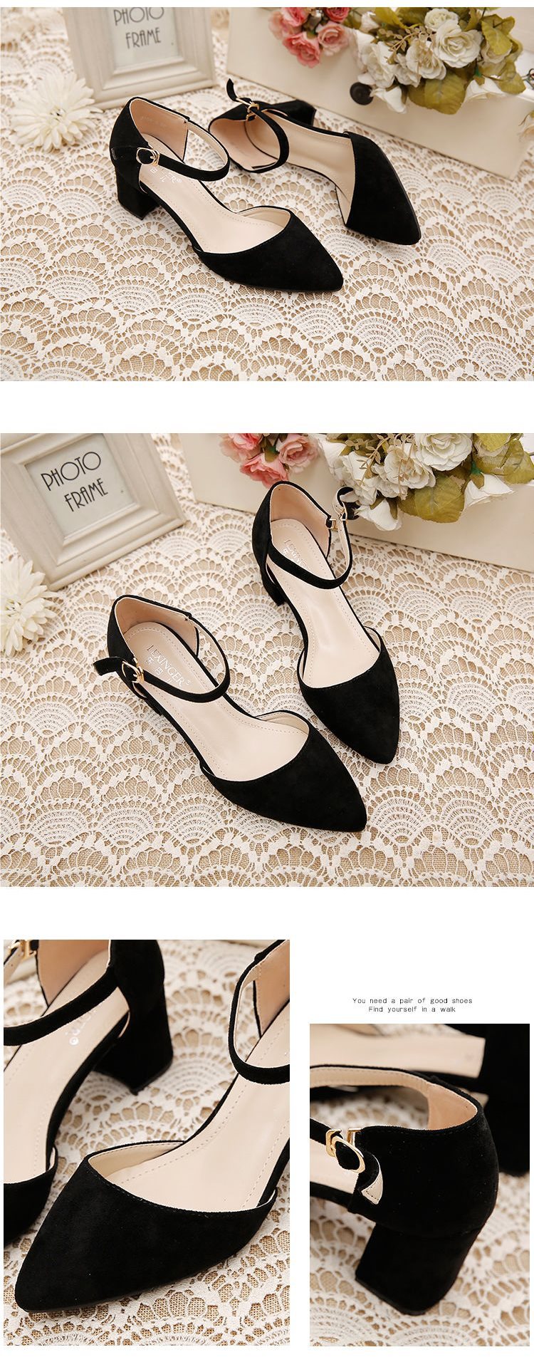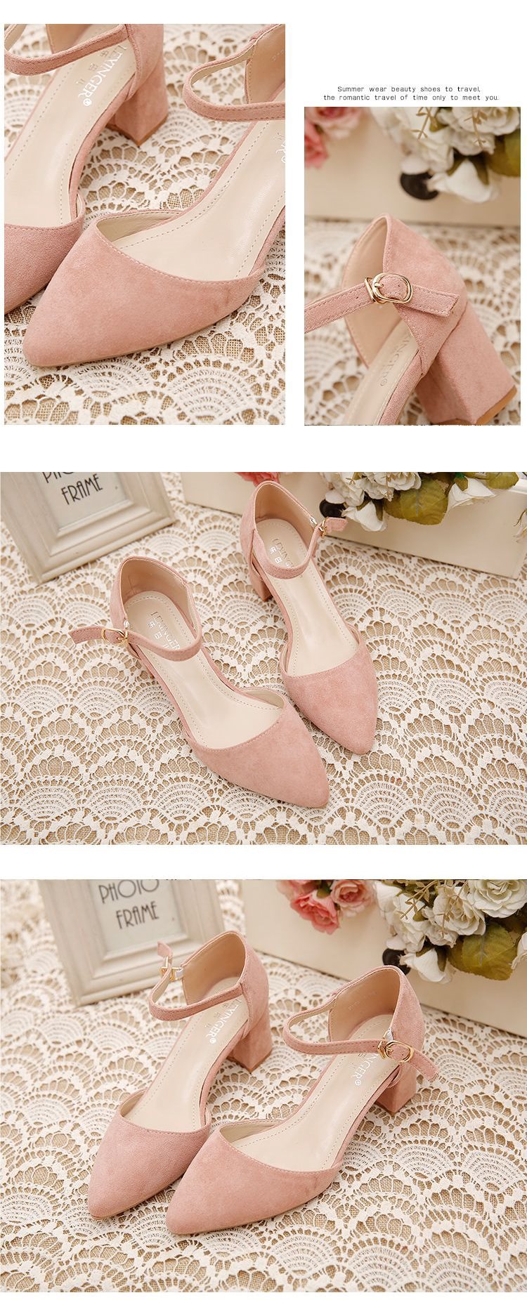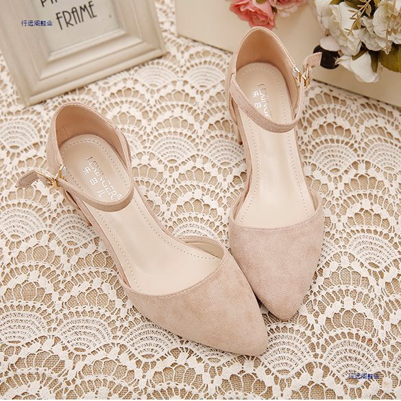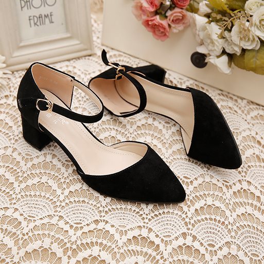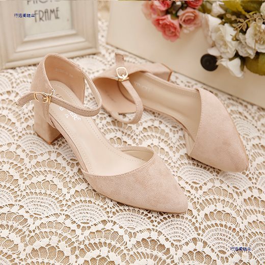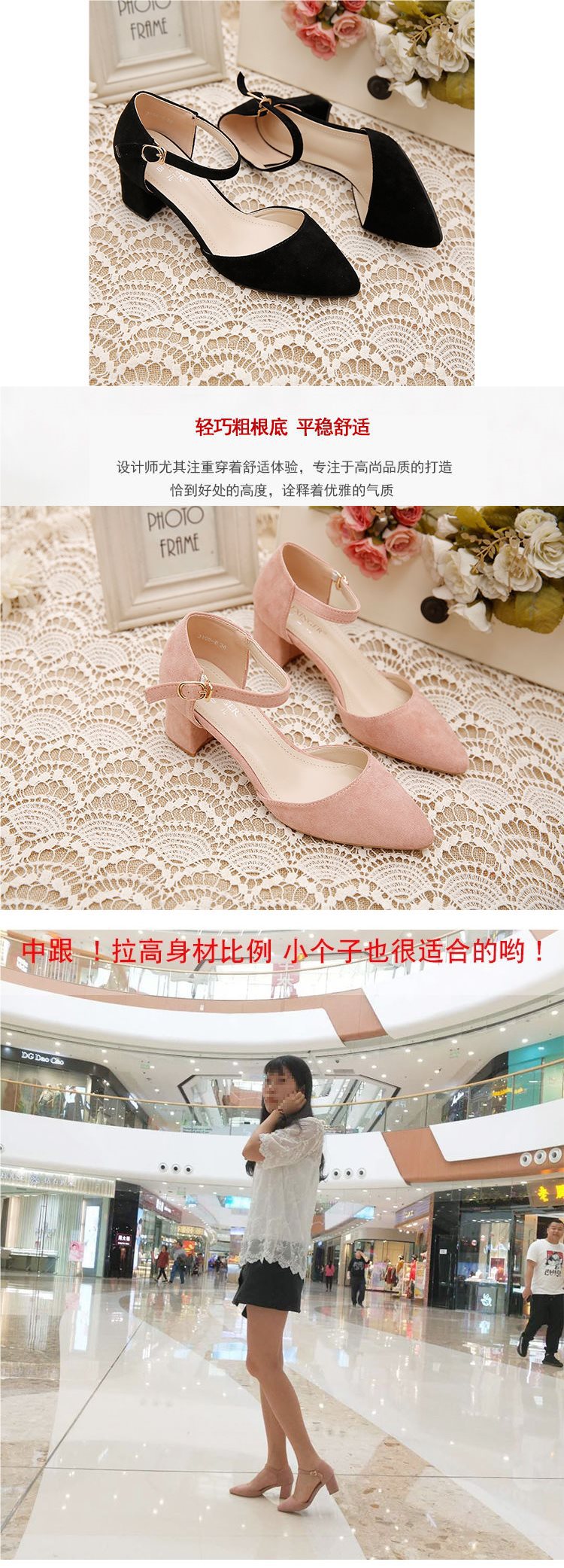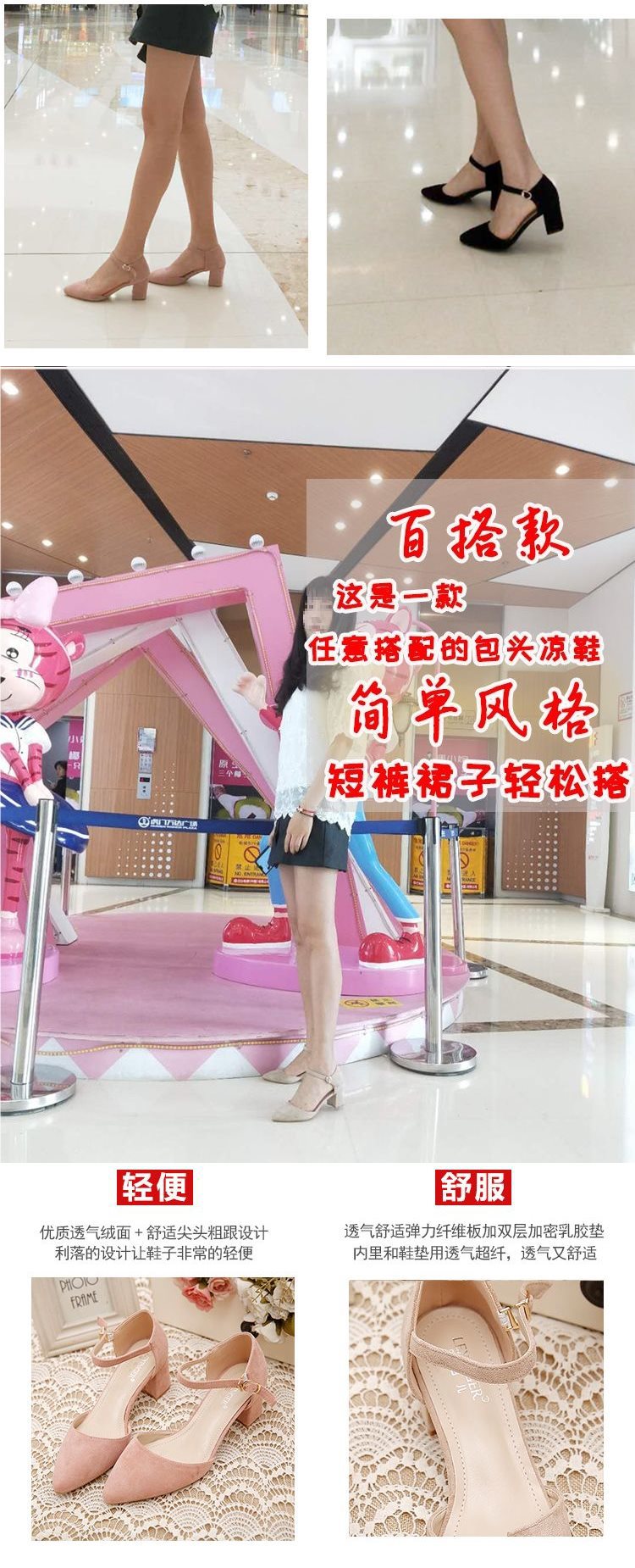 真软皮绒面单鞋女2025春夏季新款包头凉鞋女尖头百搭粗跟女鞋透气