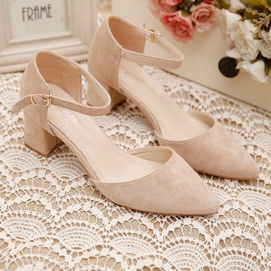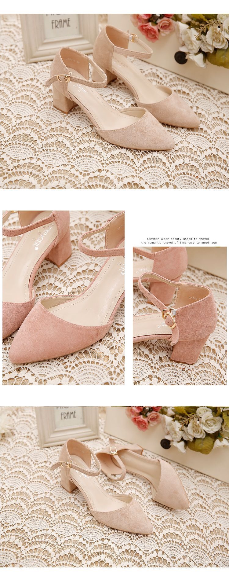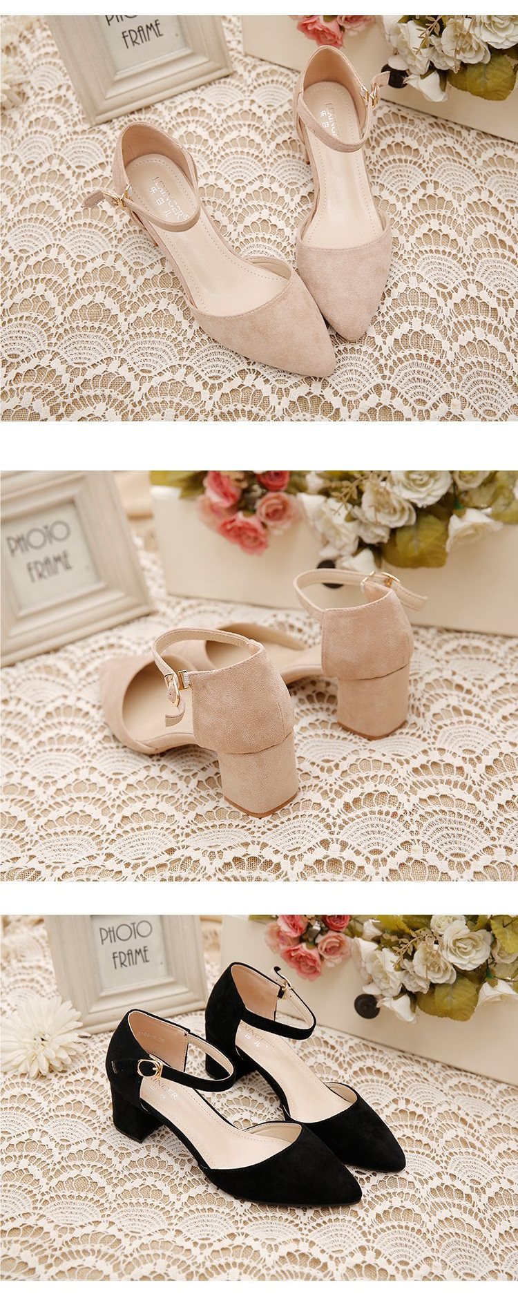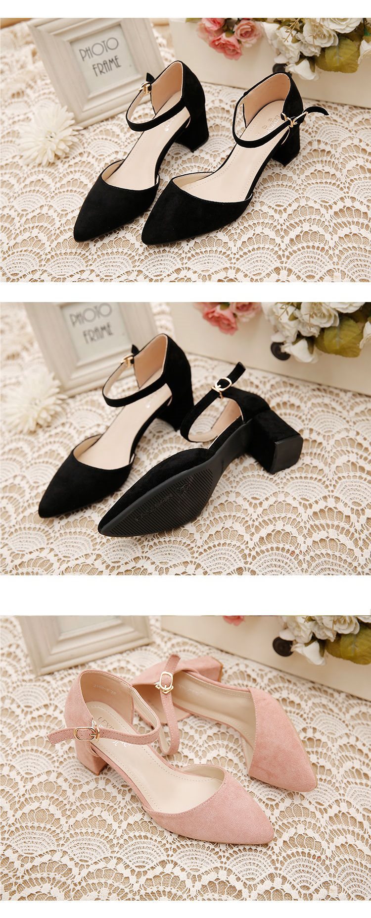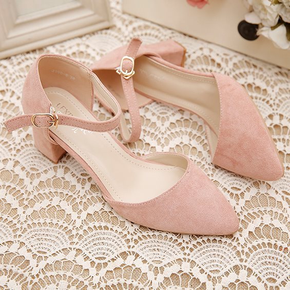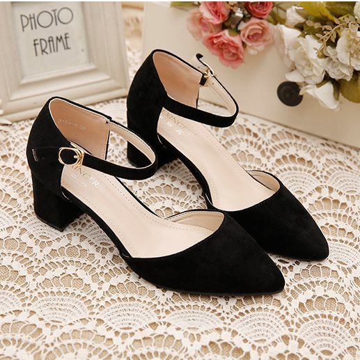 真软皮绒面单鞋女2025春夏季新款包头凉鞋女尖头百搭粗跟女鞋透气