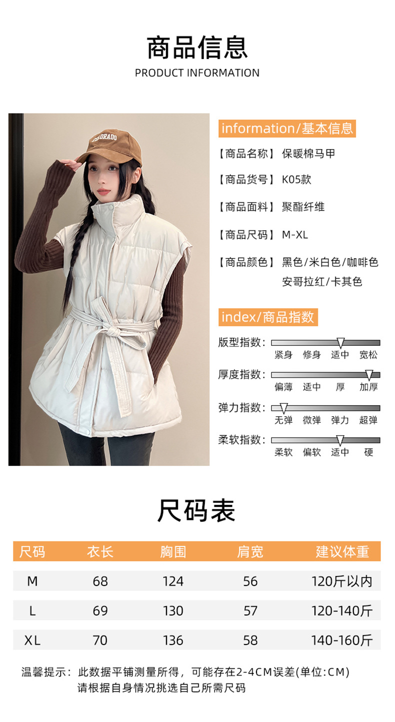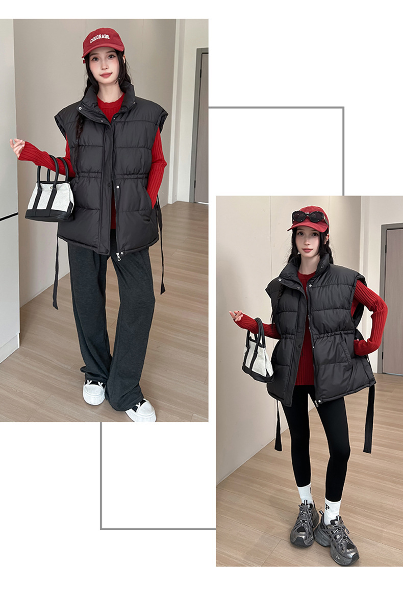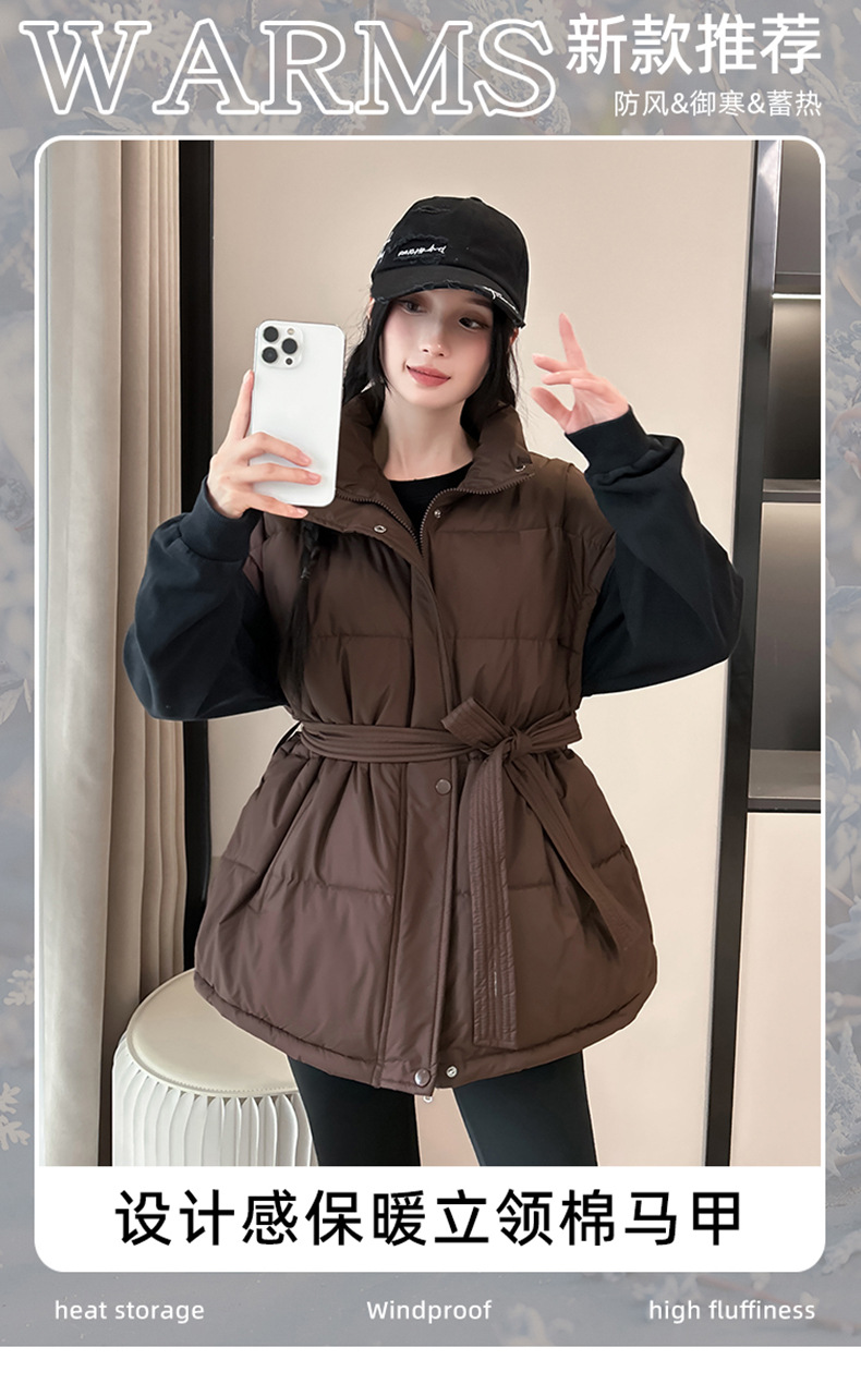 收腰棉服背心马甲女秋冬新款立领2025年韩版宽松时尚加厚洋气外套