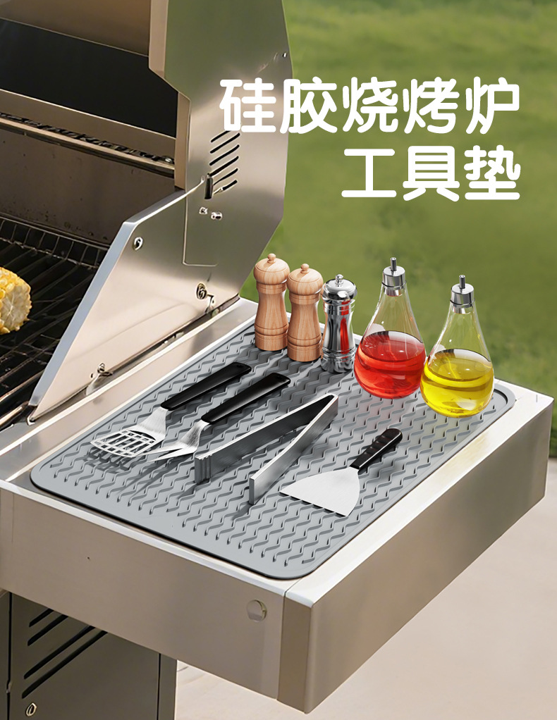 跨境热销硅胶烤盘垫适用于黑石烧烤侧架耐热烧烤工具垫炸锅沥油垫