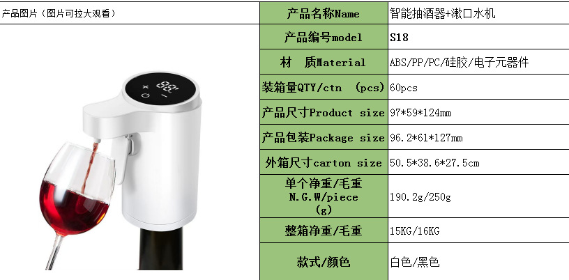 S18智能分酒器【黑色】; S18智能分酒器【白色】