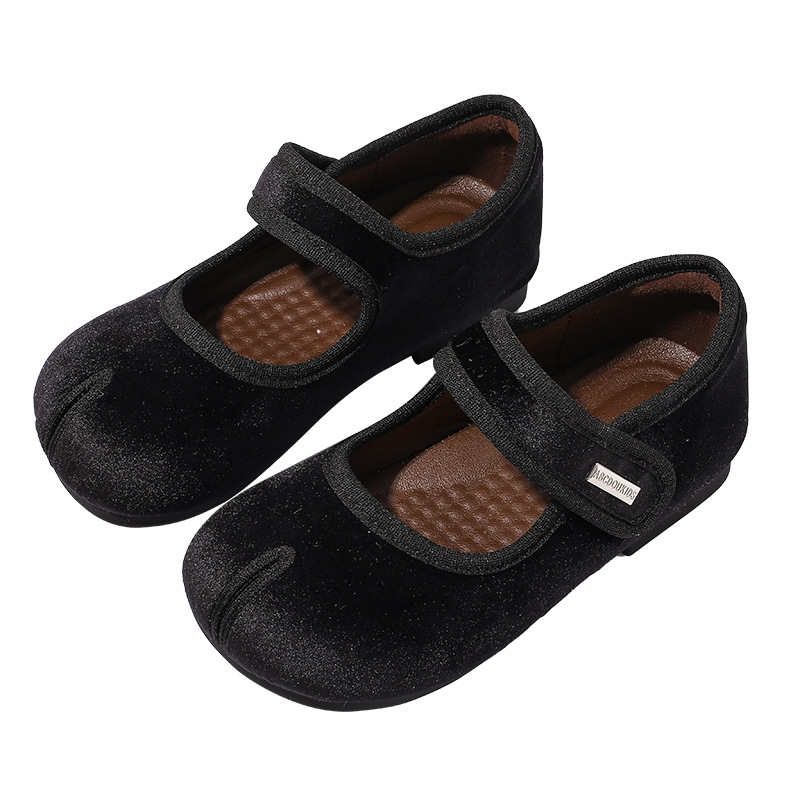 女童小皮鞋2025秋季新款儿童复古丝绒公主鞋女宝宝浅口假分趾单鞋