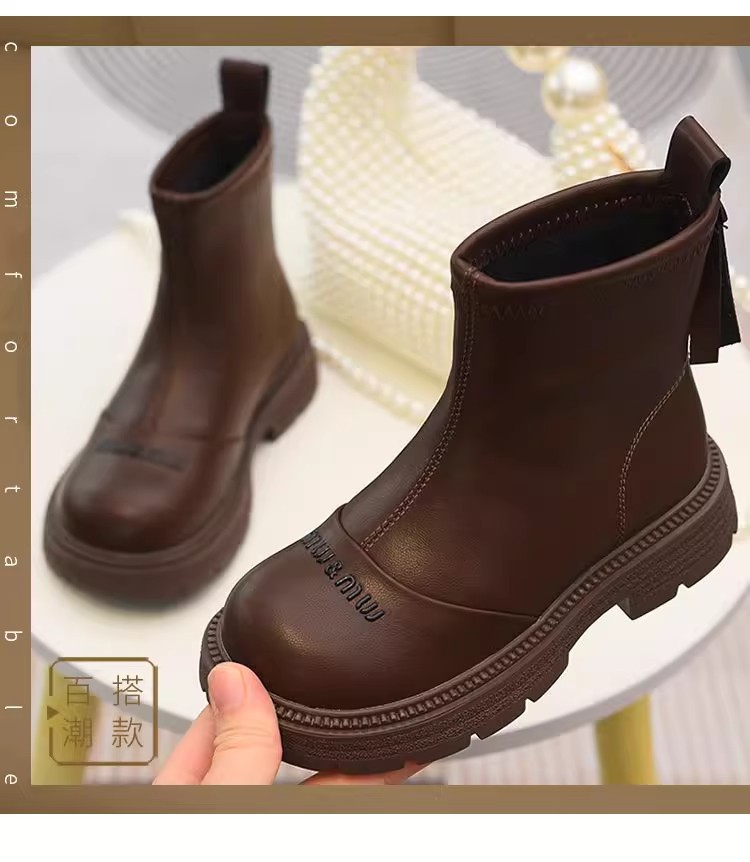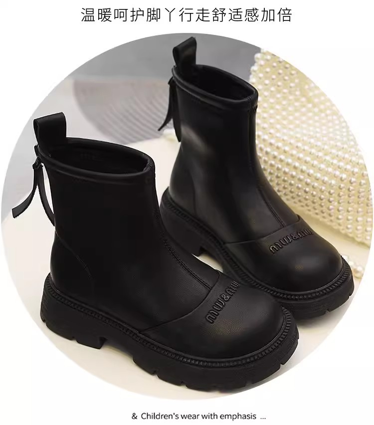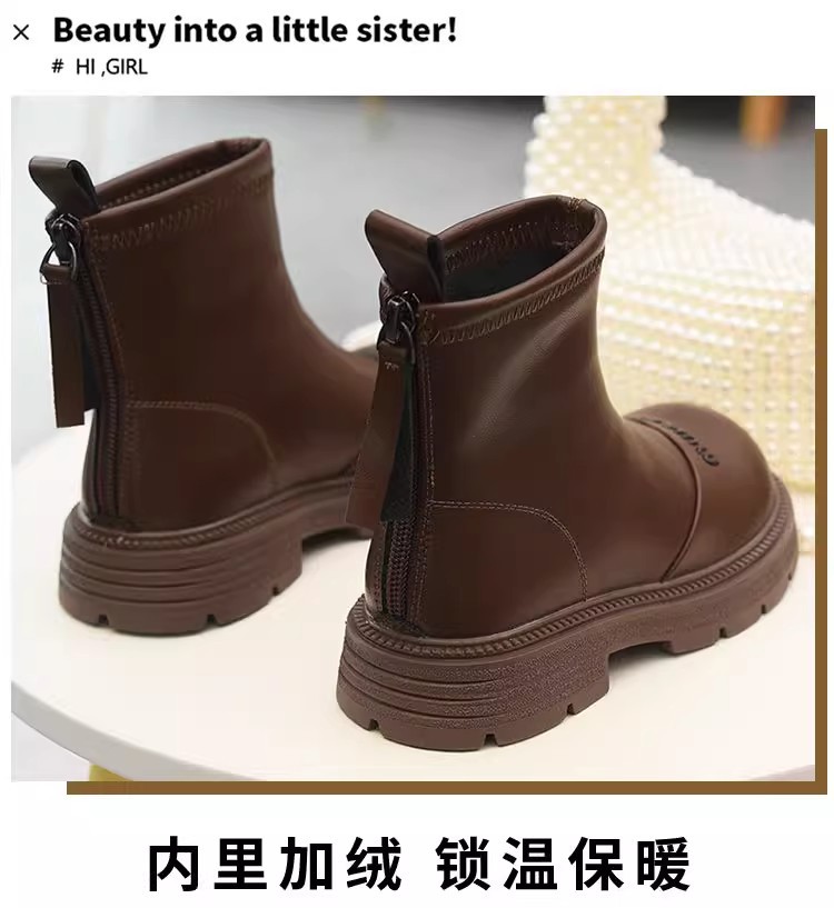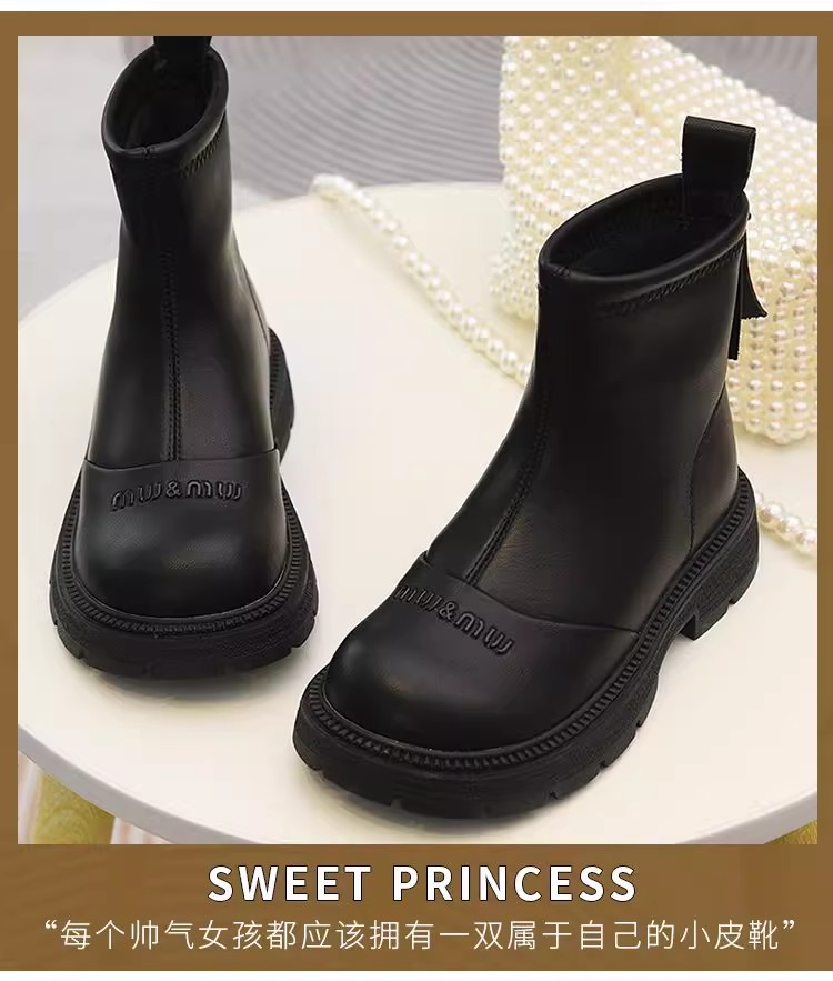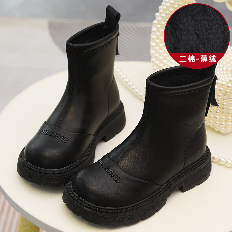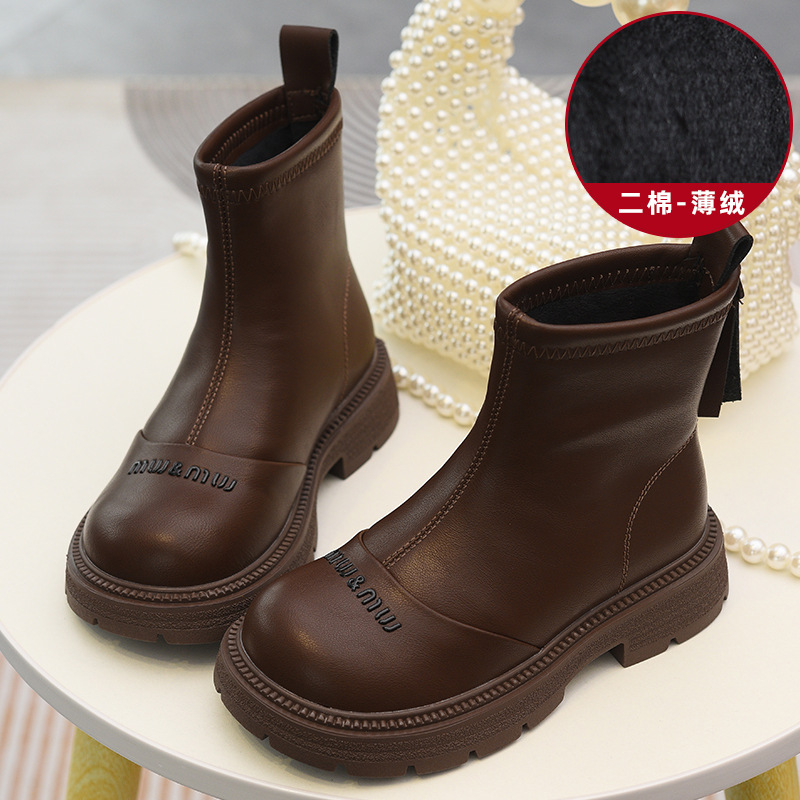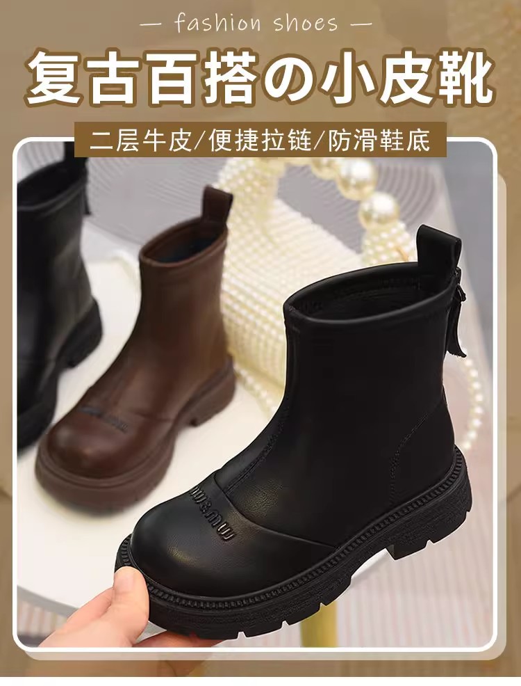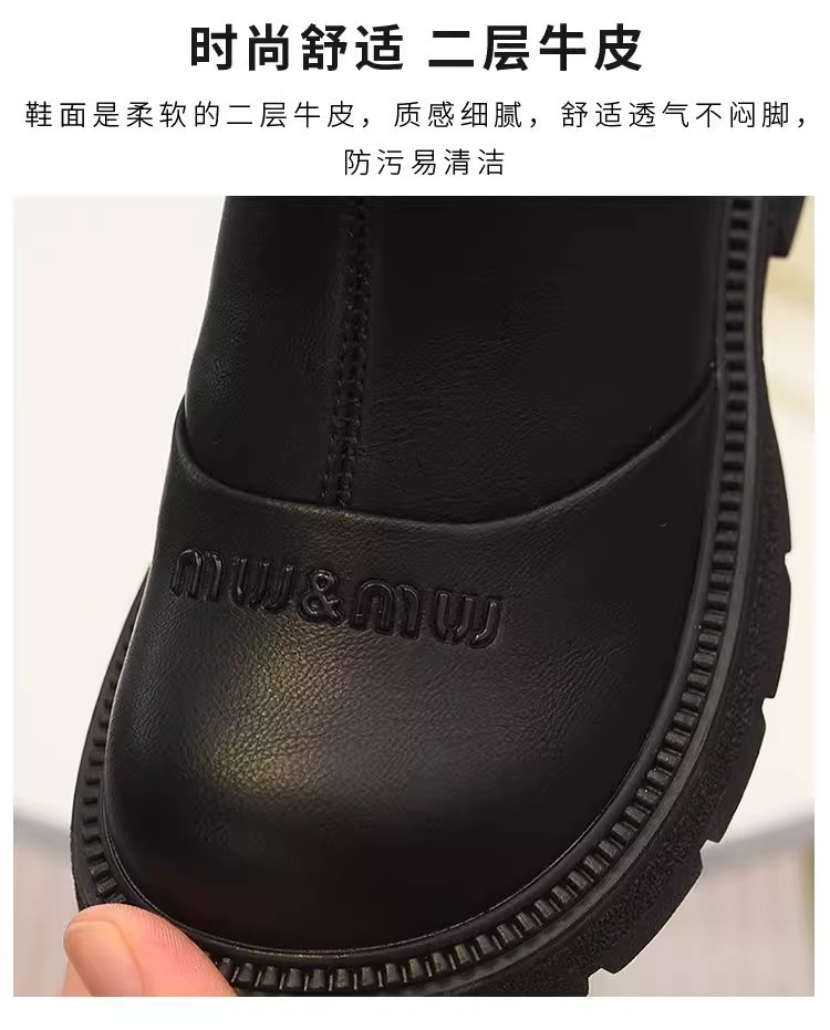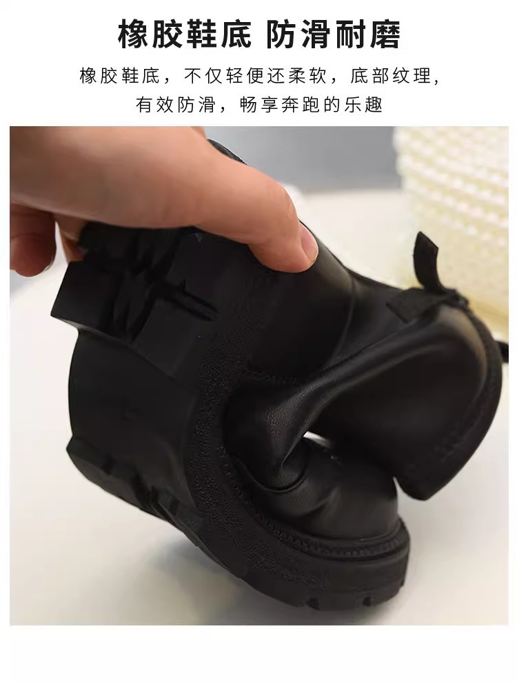 软皮女童短靴儿童单靴2025秋冬新款童鞋加绒二棉靴切尔西靴马丁靴