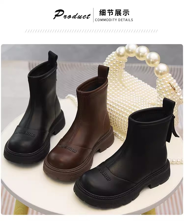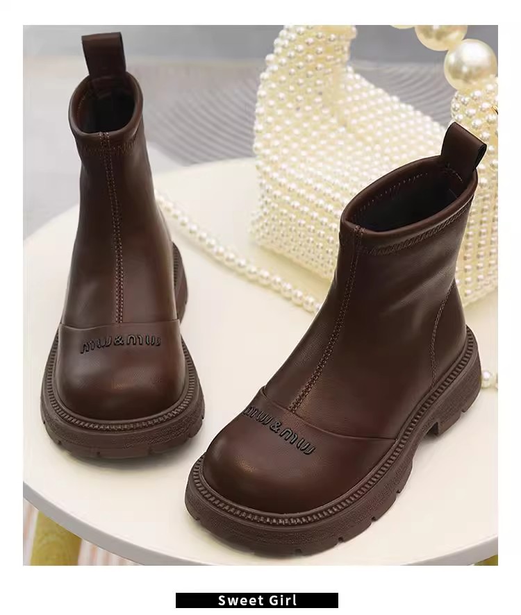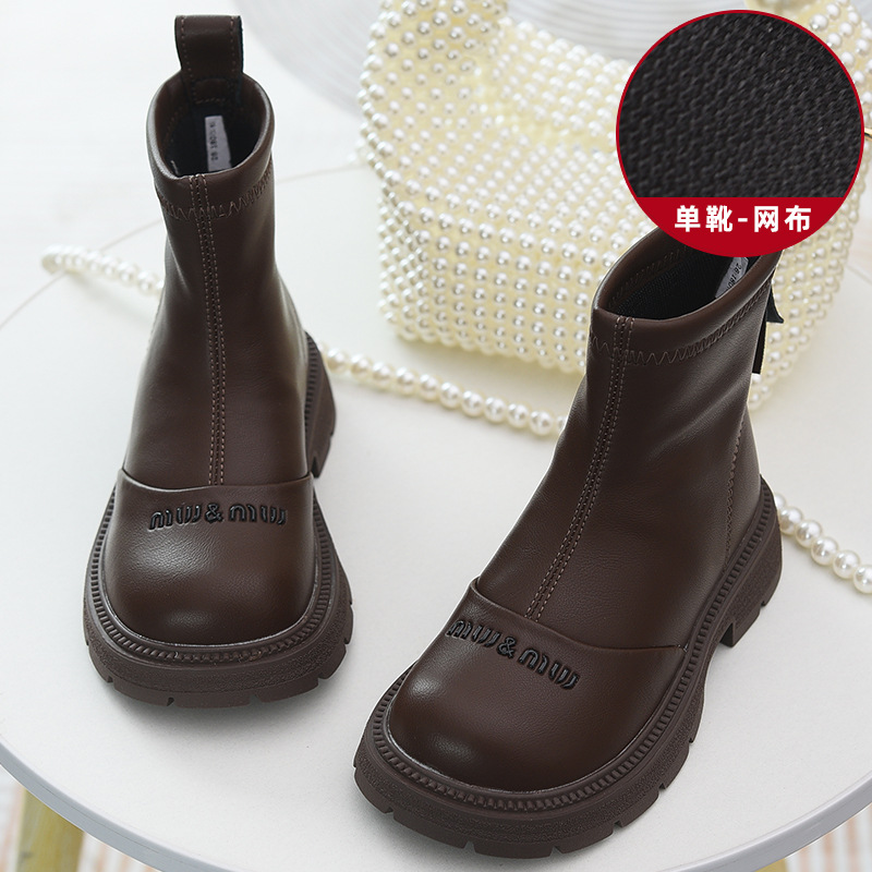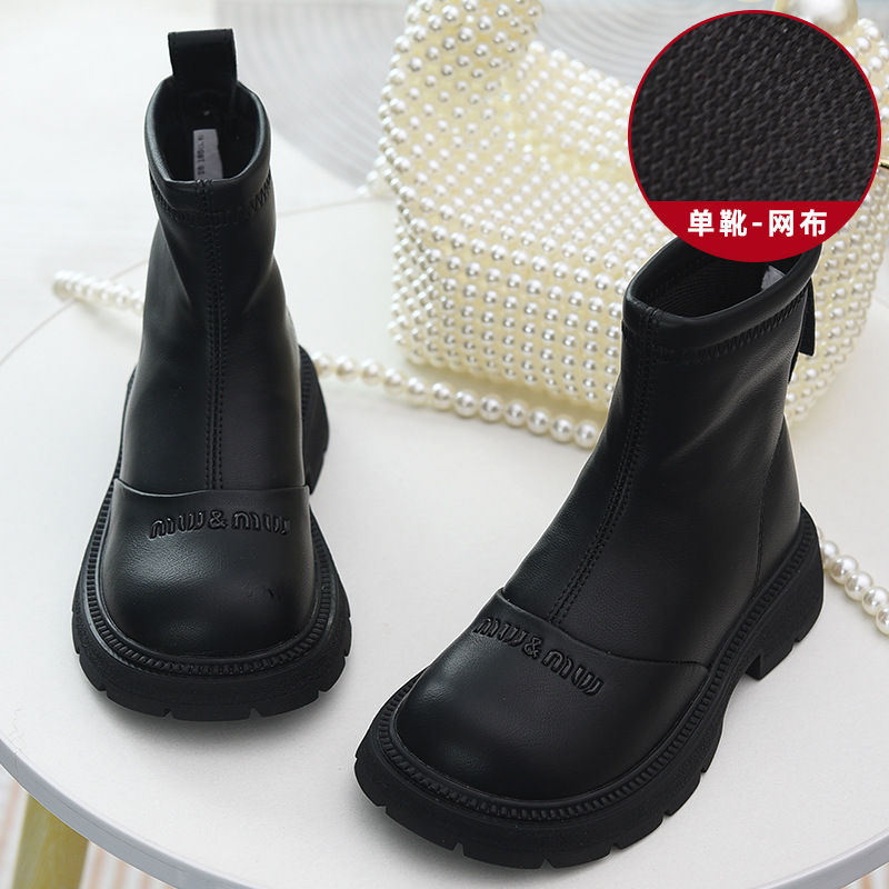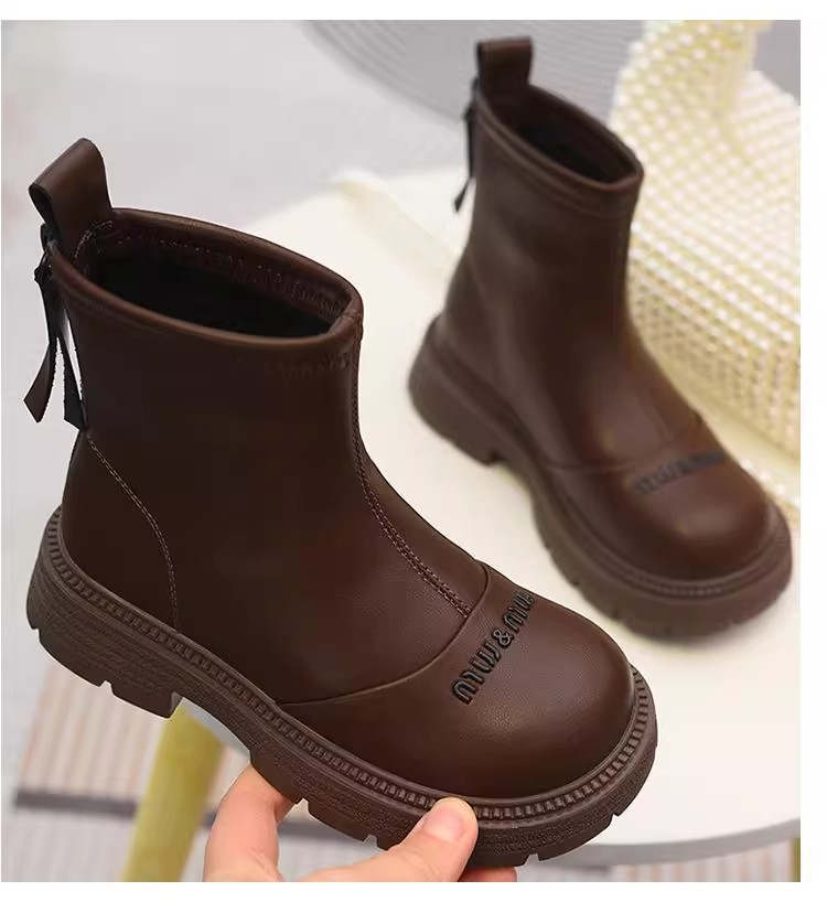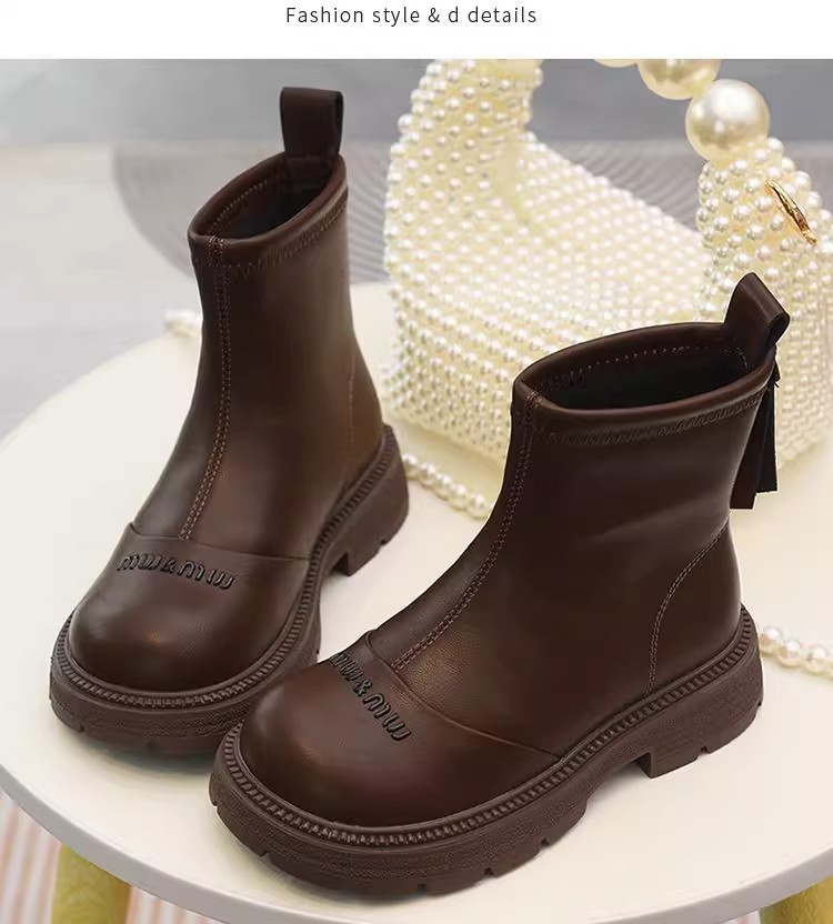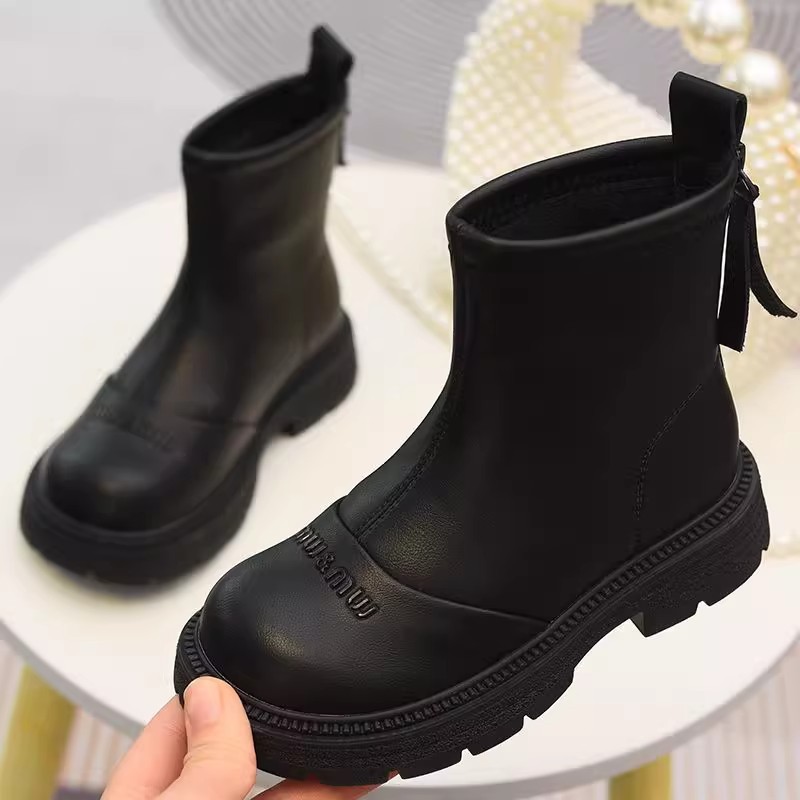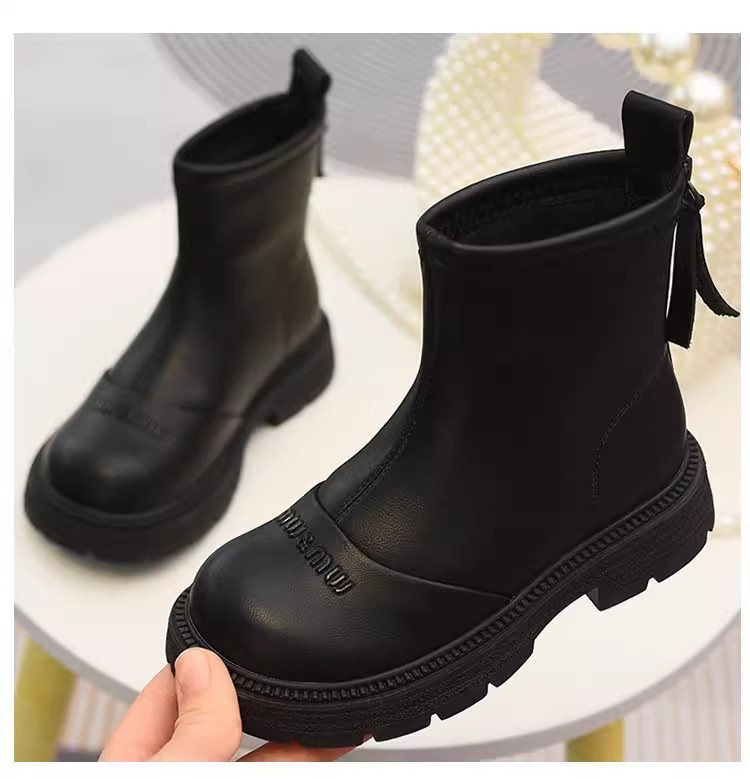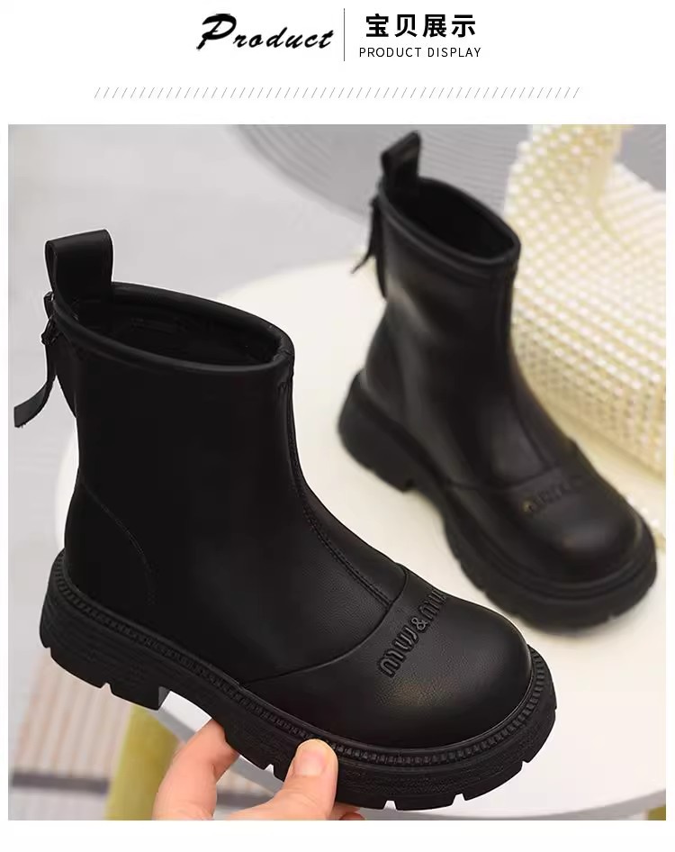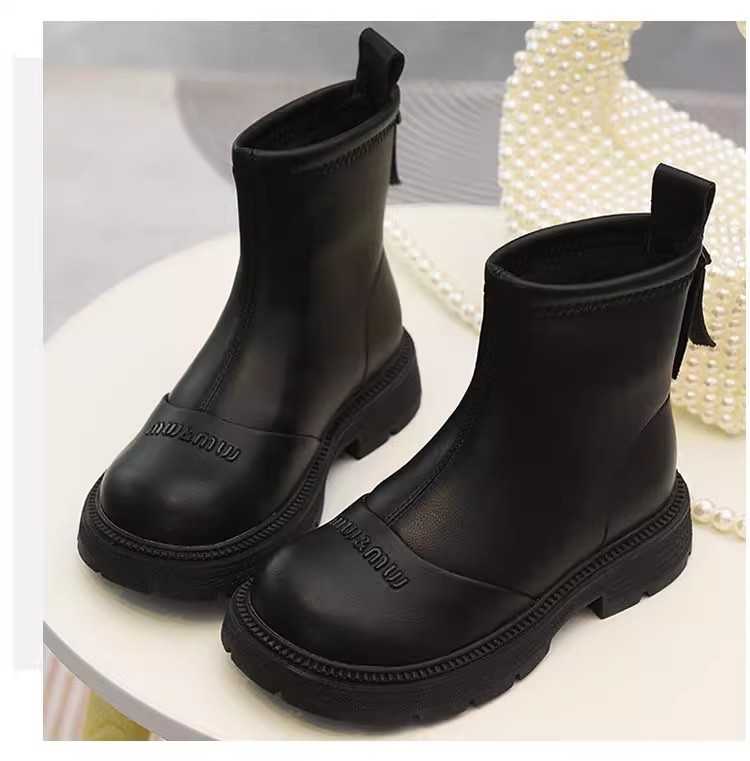 软皮女童短靴儿童单靴2025秋冬新款童鞋加绒二棉靴切尔西靴马丁靴