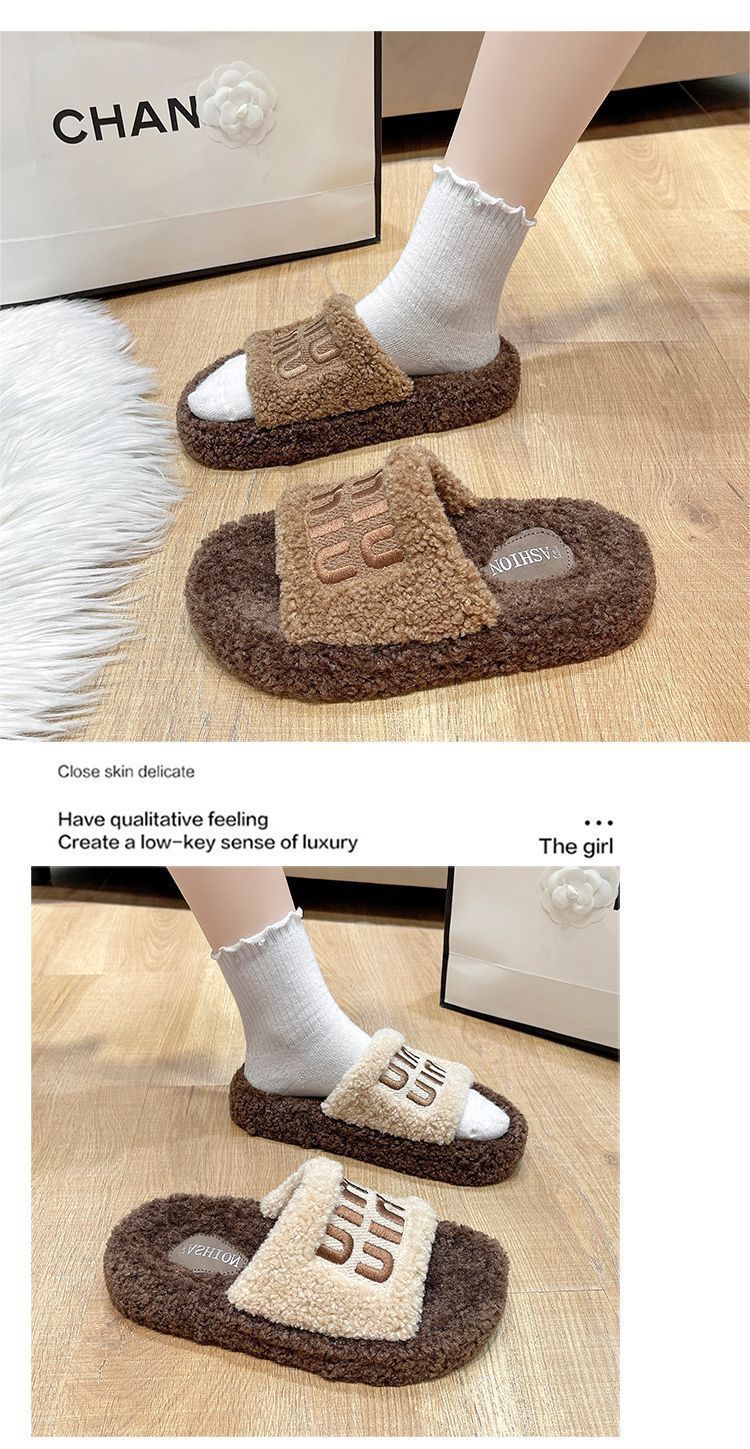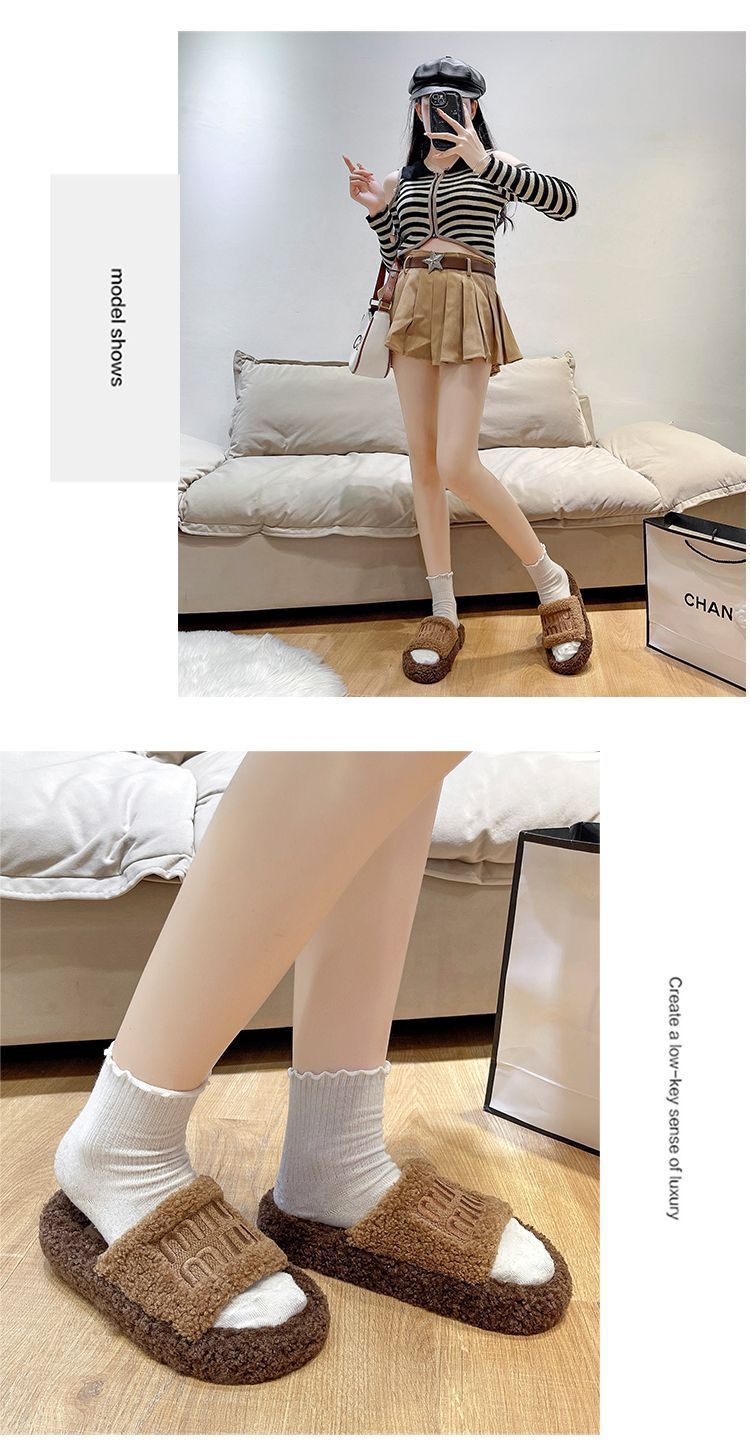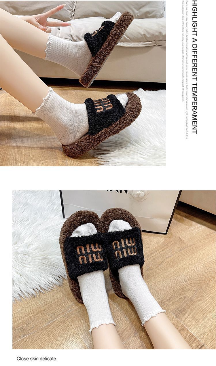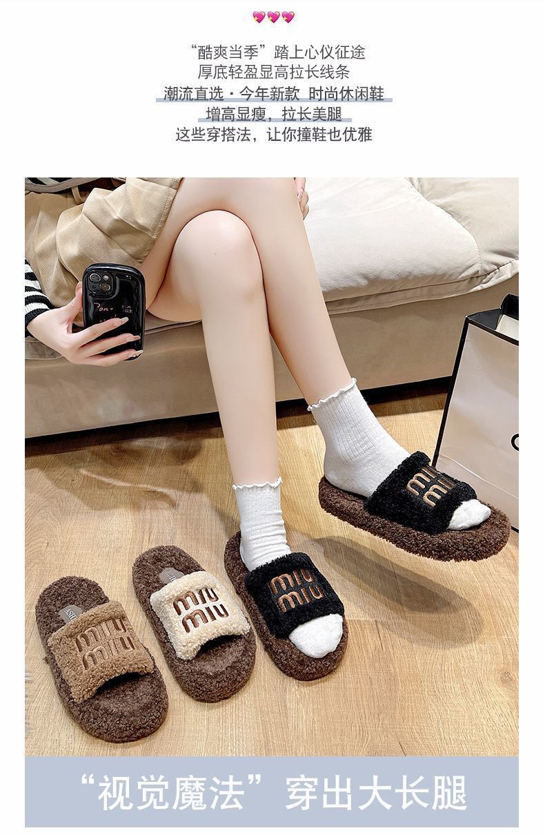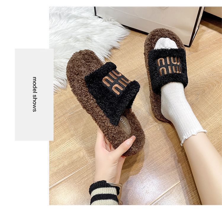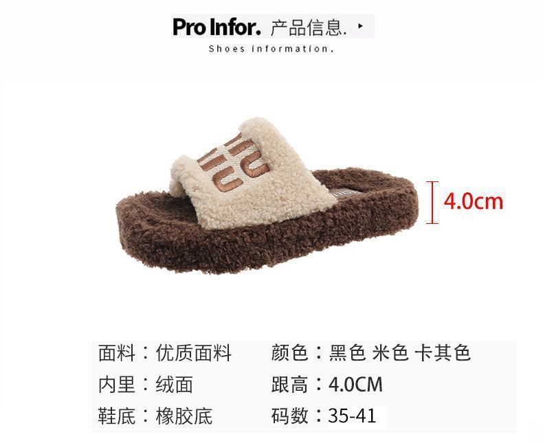 新款厚底毛毛拖鞋女外穿秋冬季羊羔毛茸茸网红舒适时尚家居棉拖鞋