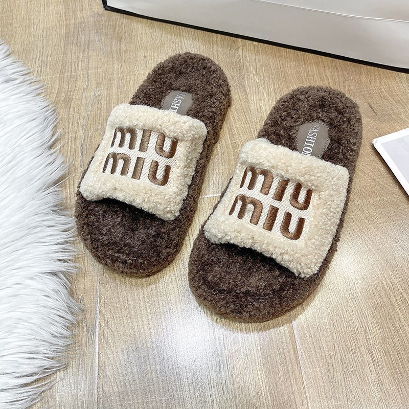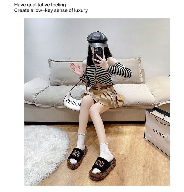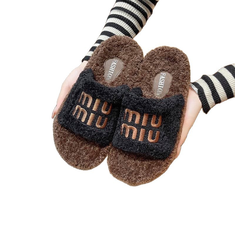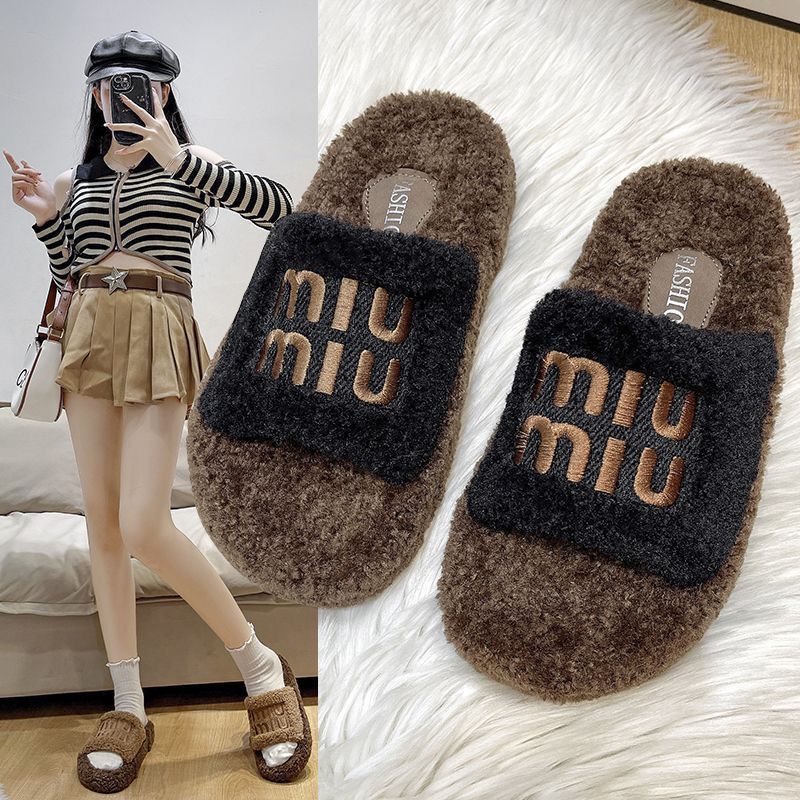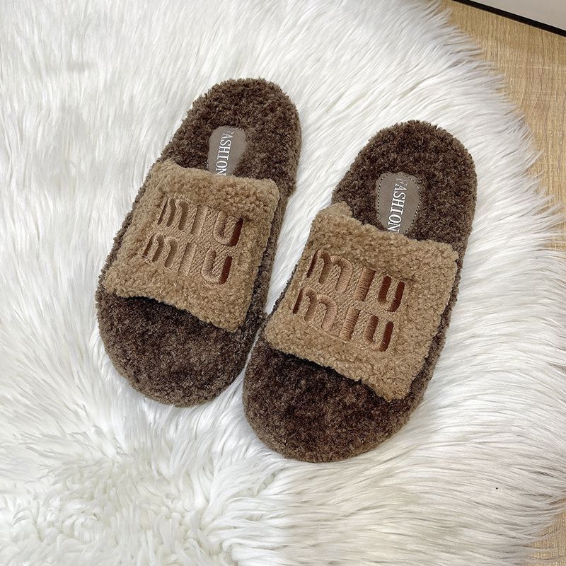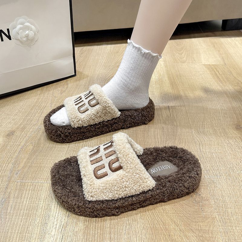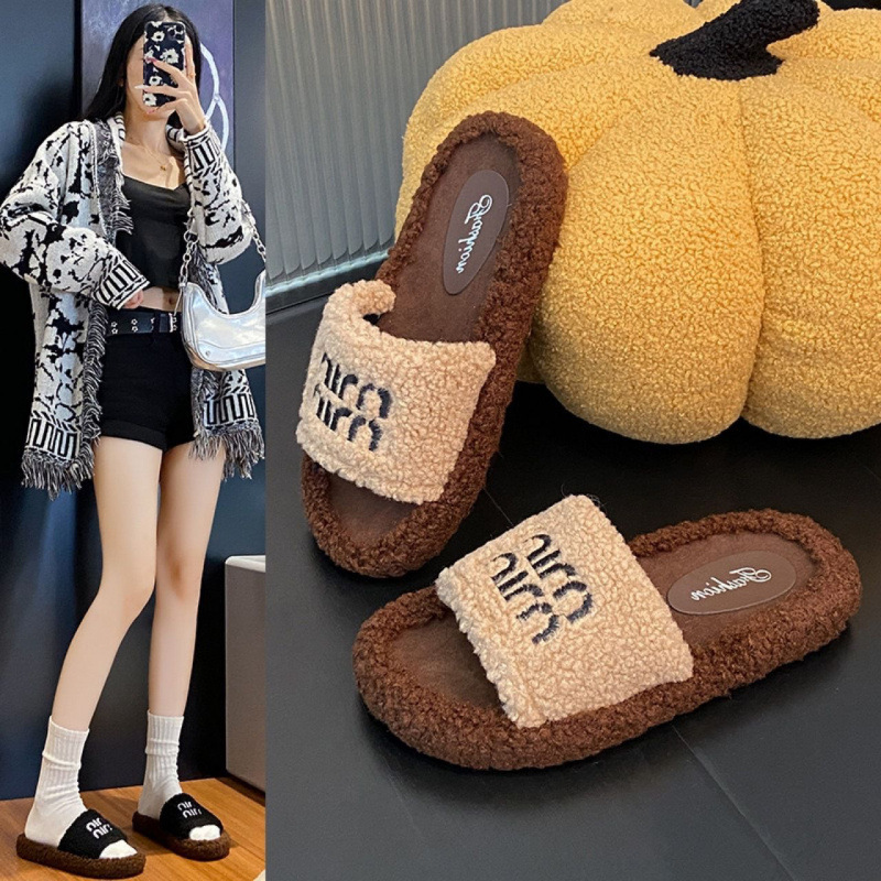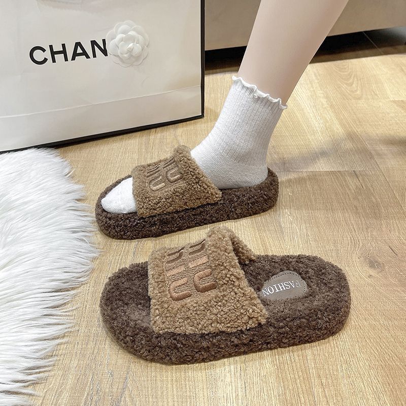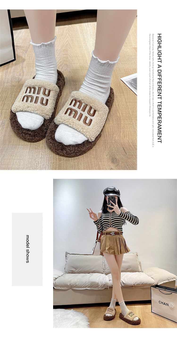 新款厚底毛毛拖鞋女外穿秋冬季羊羔毛茸茸网红舒适时尚家居棉拖鞋