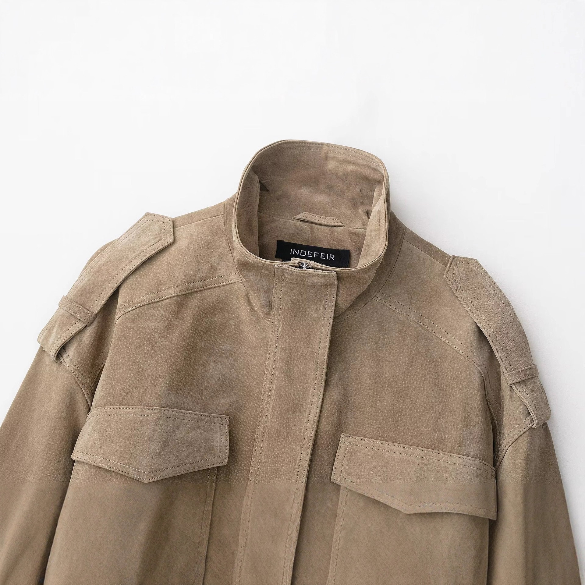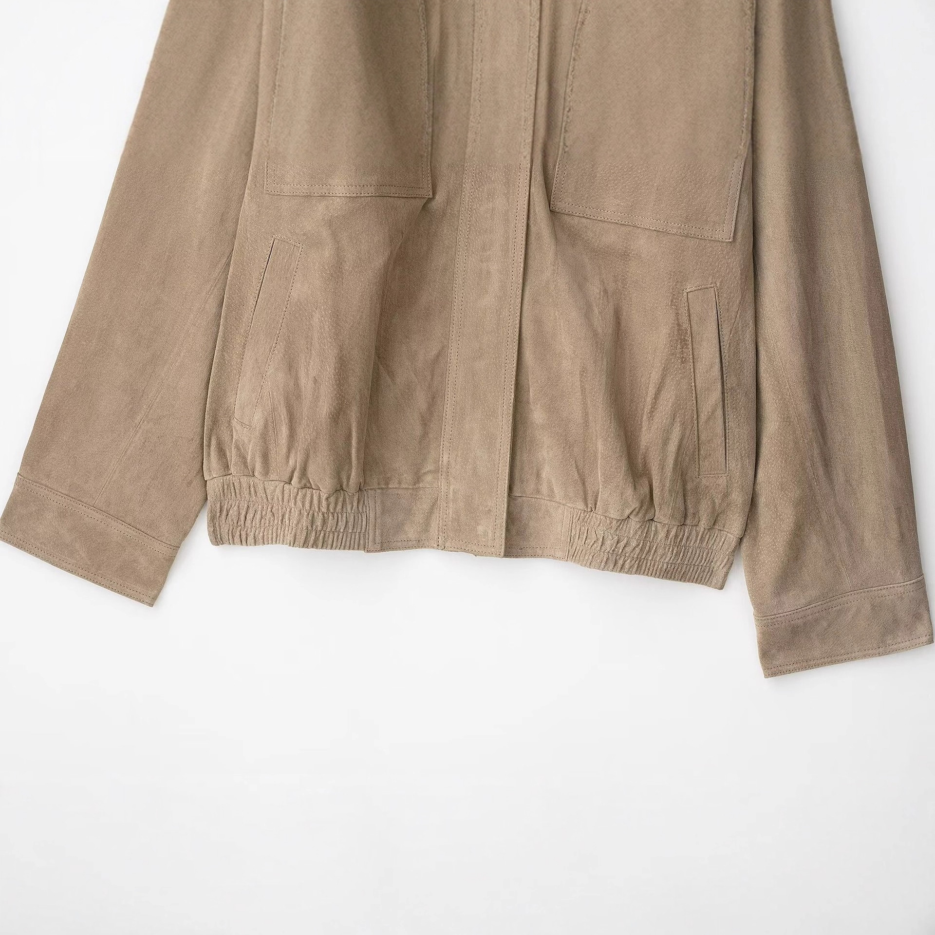 跨境女装批发 欧美风时尚百搭宽松口袋绒面质感外套休闲夹克上衣