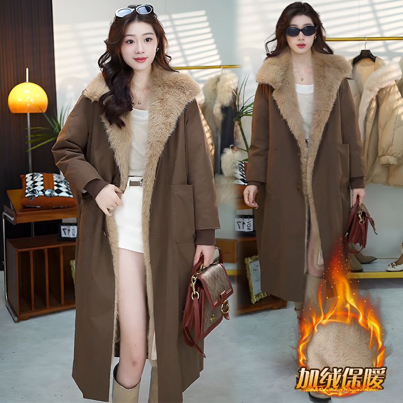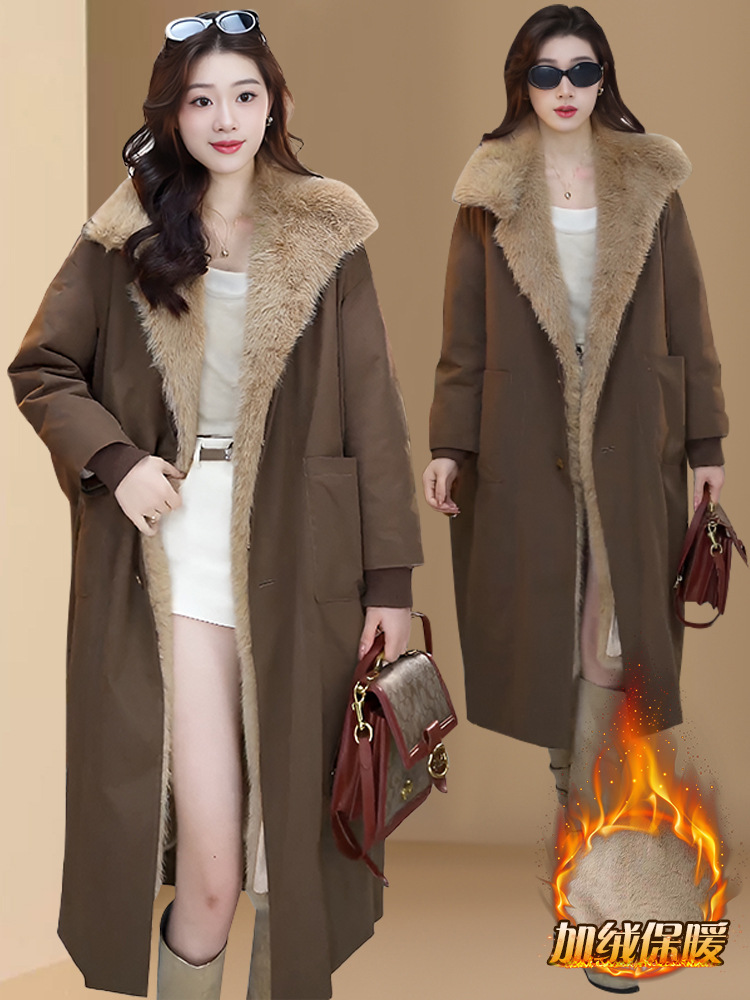 2025秋冬季新款翻领毛毛外套加绒加厚保暖复古垂感单排扣派克服女