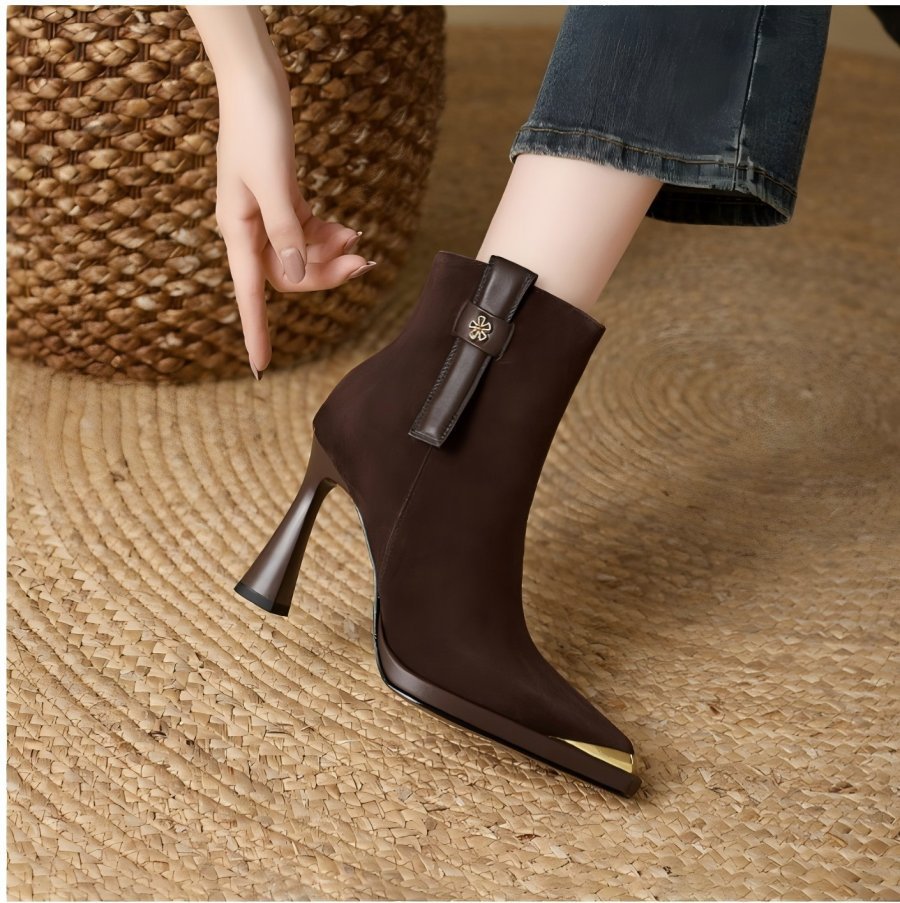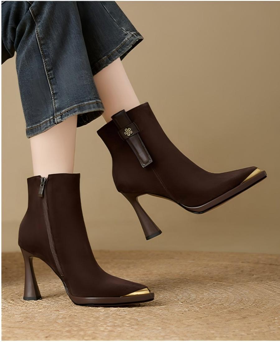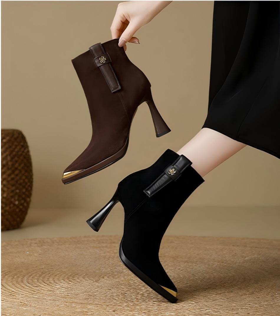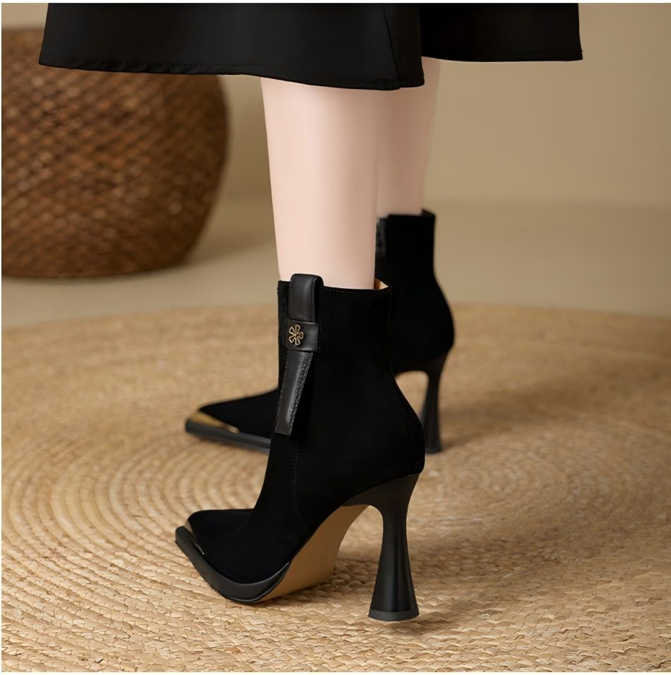 复古英伦风防水台高跟女2025秋冬新款金属尖头细跟时装靴瘦瘦靴