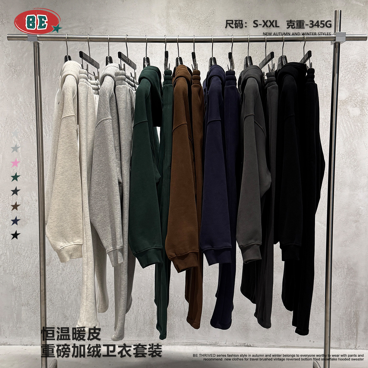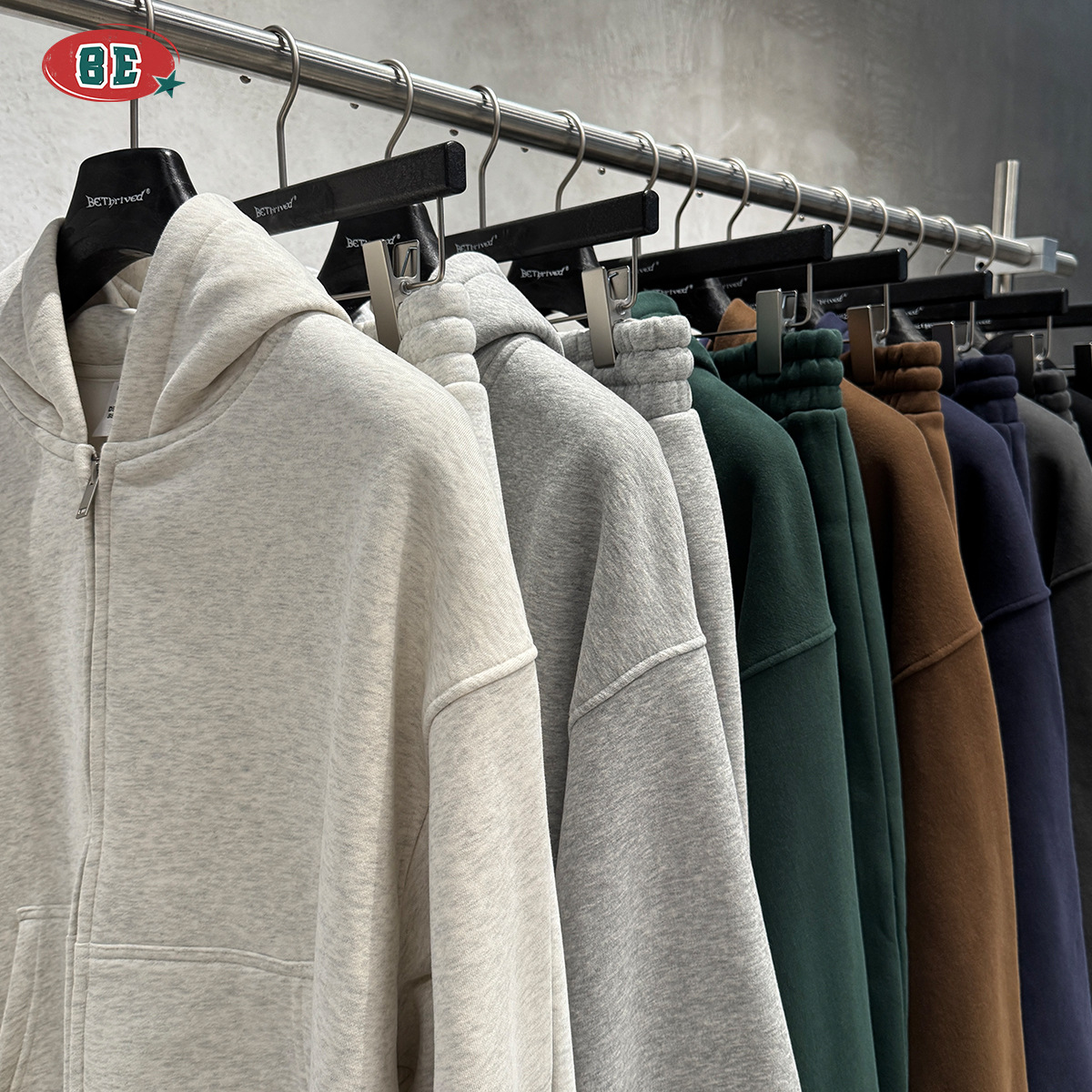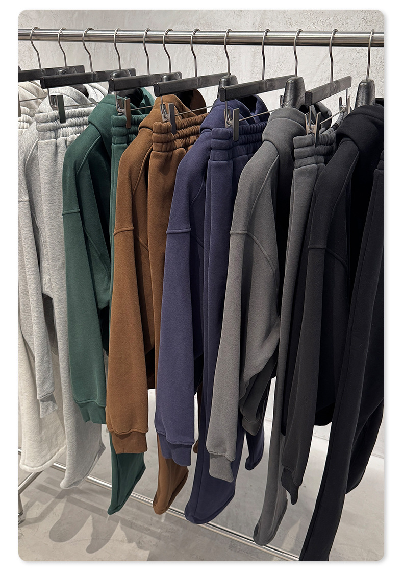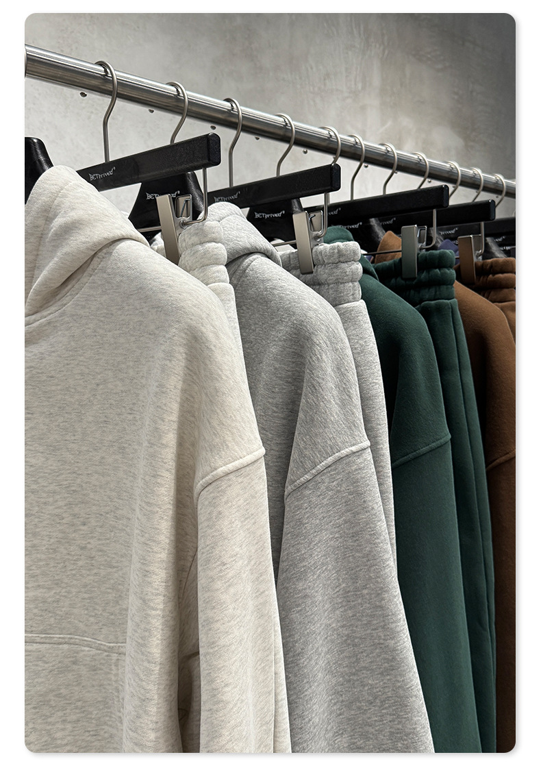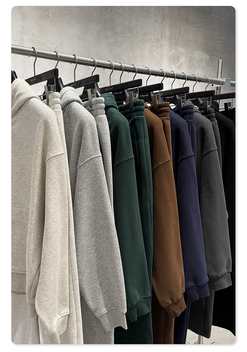 BE男装|2025秋冬美式高街拉链加绒连帽卫衣休闲直筒长裤套装男