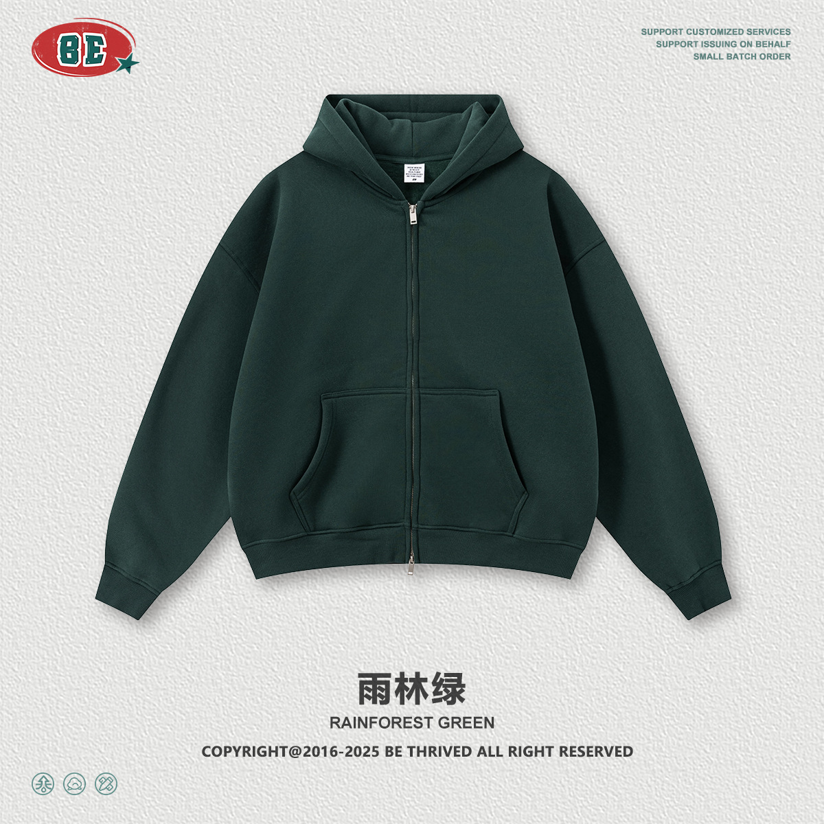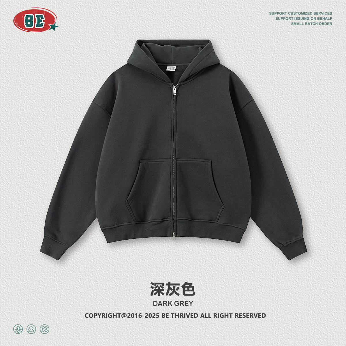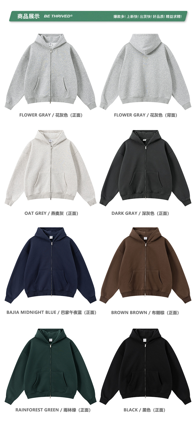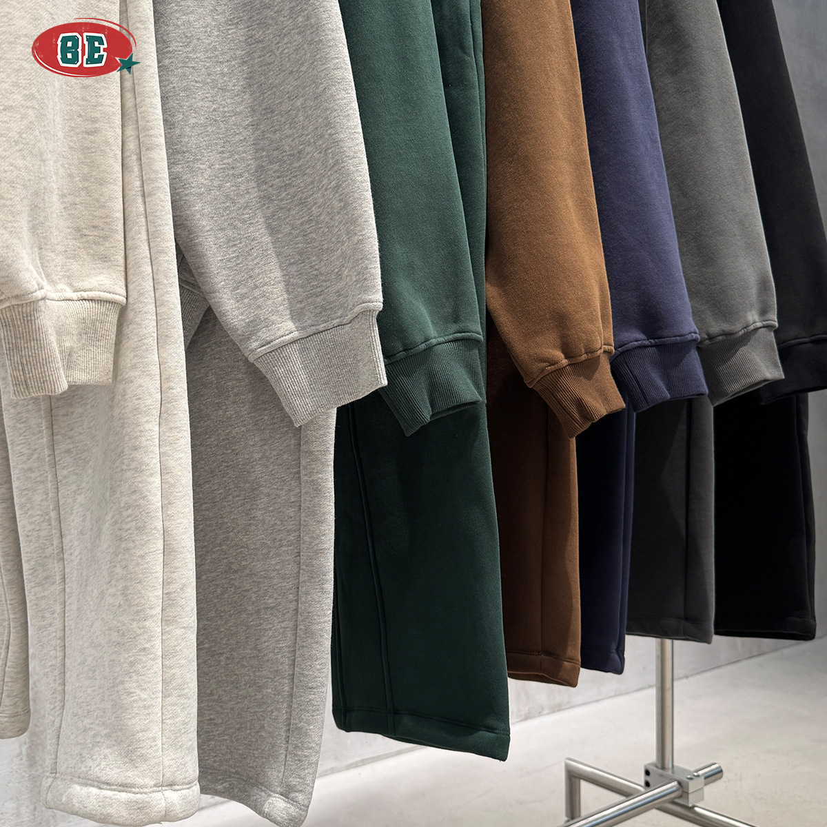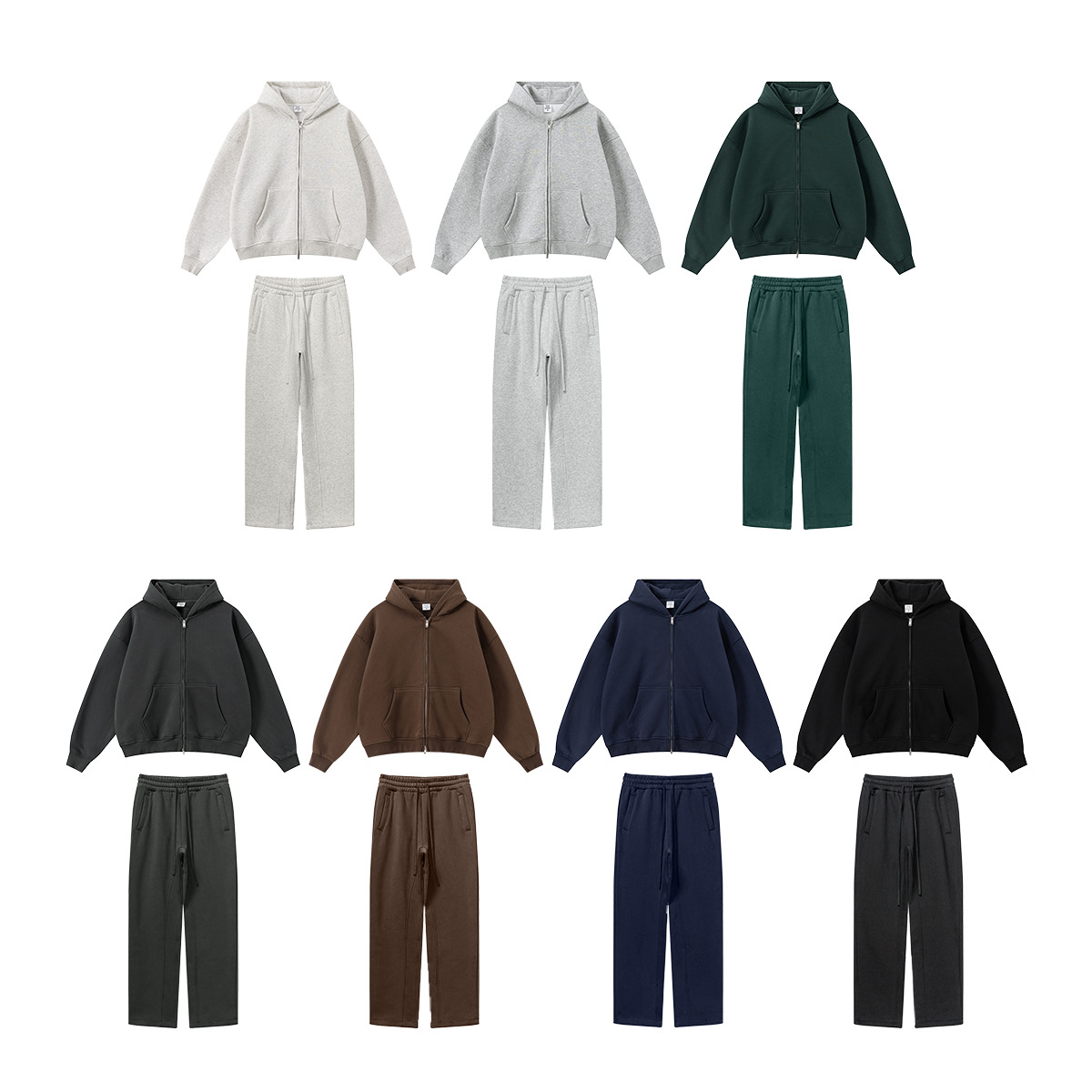 BE男装|2025秋冬美式高街拉链加绒连帽卫衣休闲直筒长裤套装男